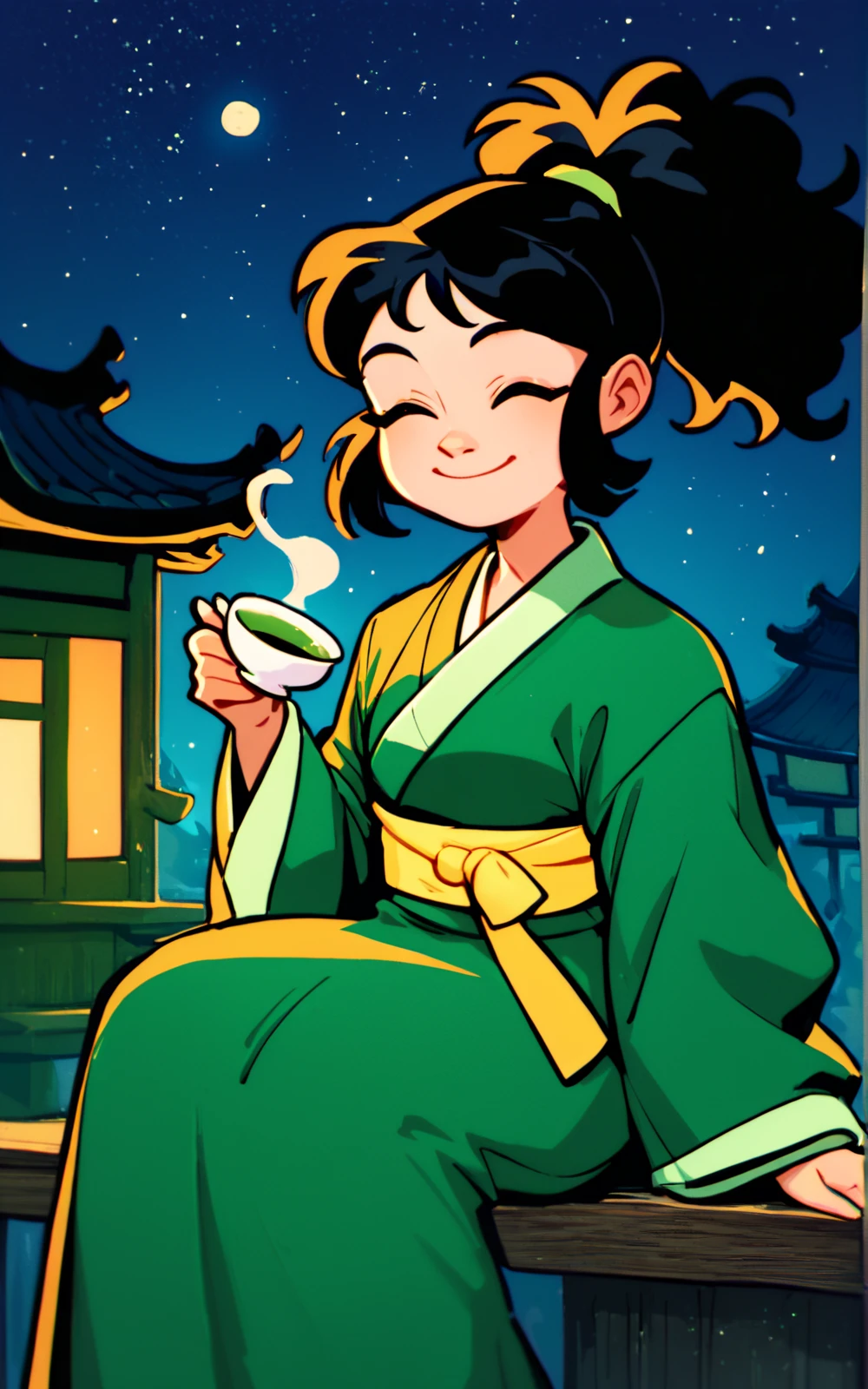 For her Outfit: green kimono, kimono, long sleeves, japanese clothes