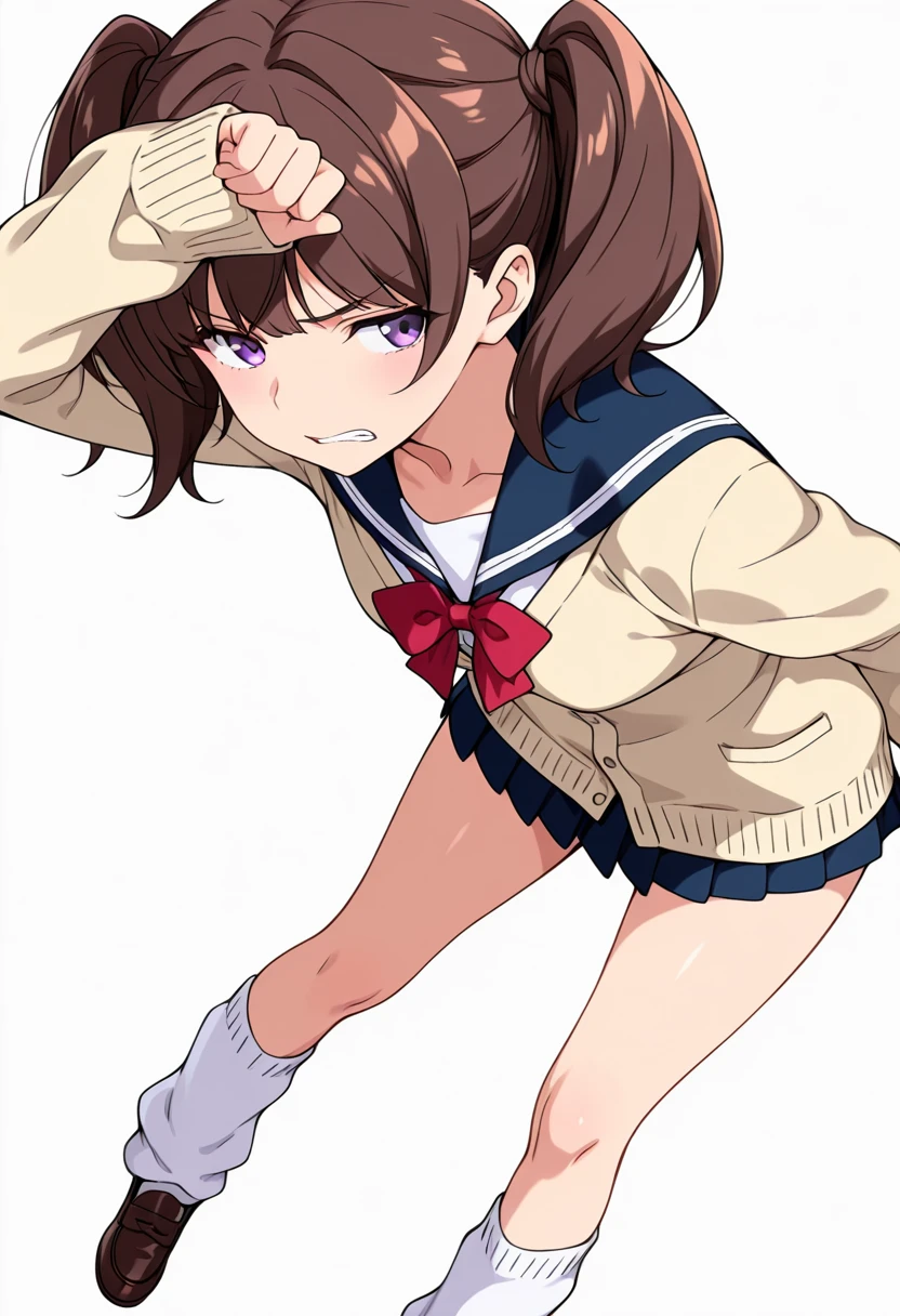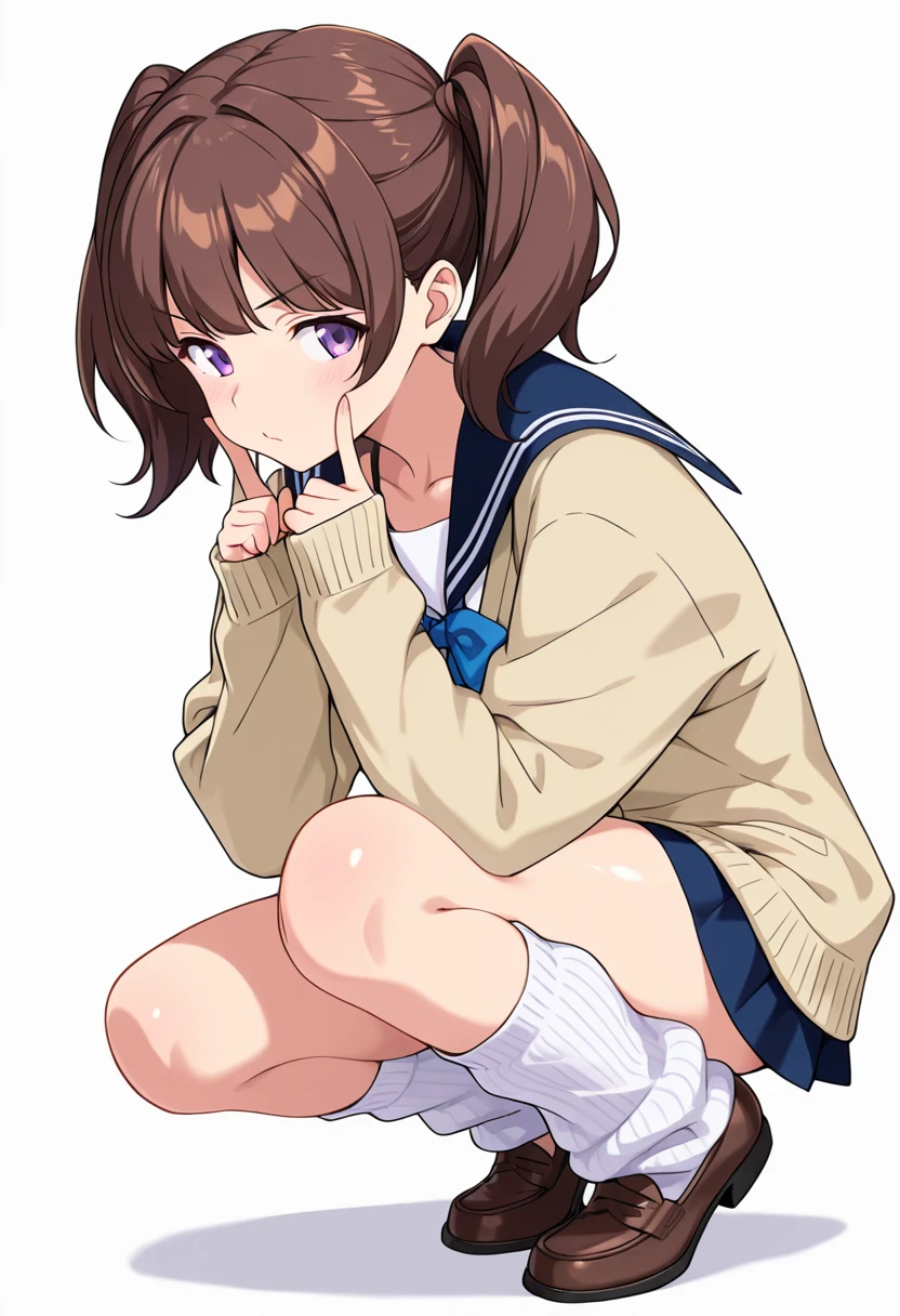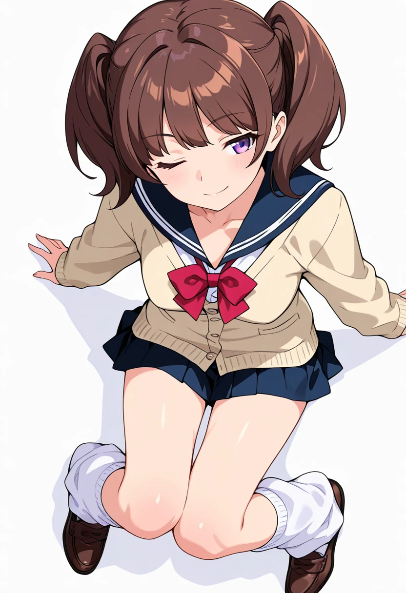 mihiro_cnr, 1girl, brown hair, purple eyes,twintails,👗Default Outfit