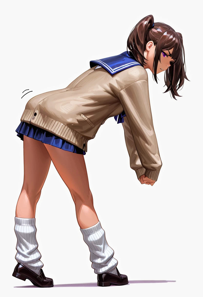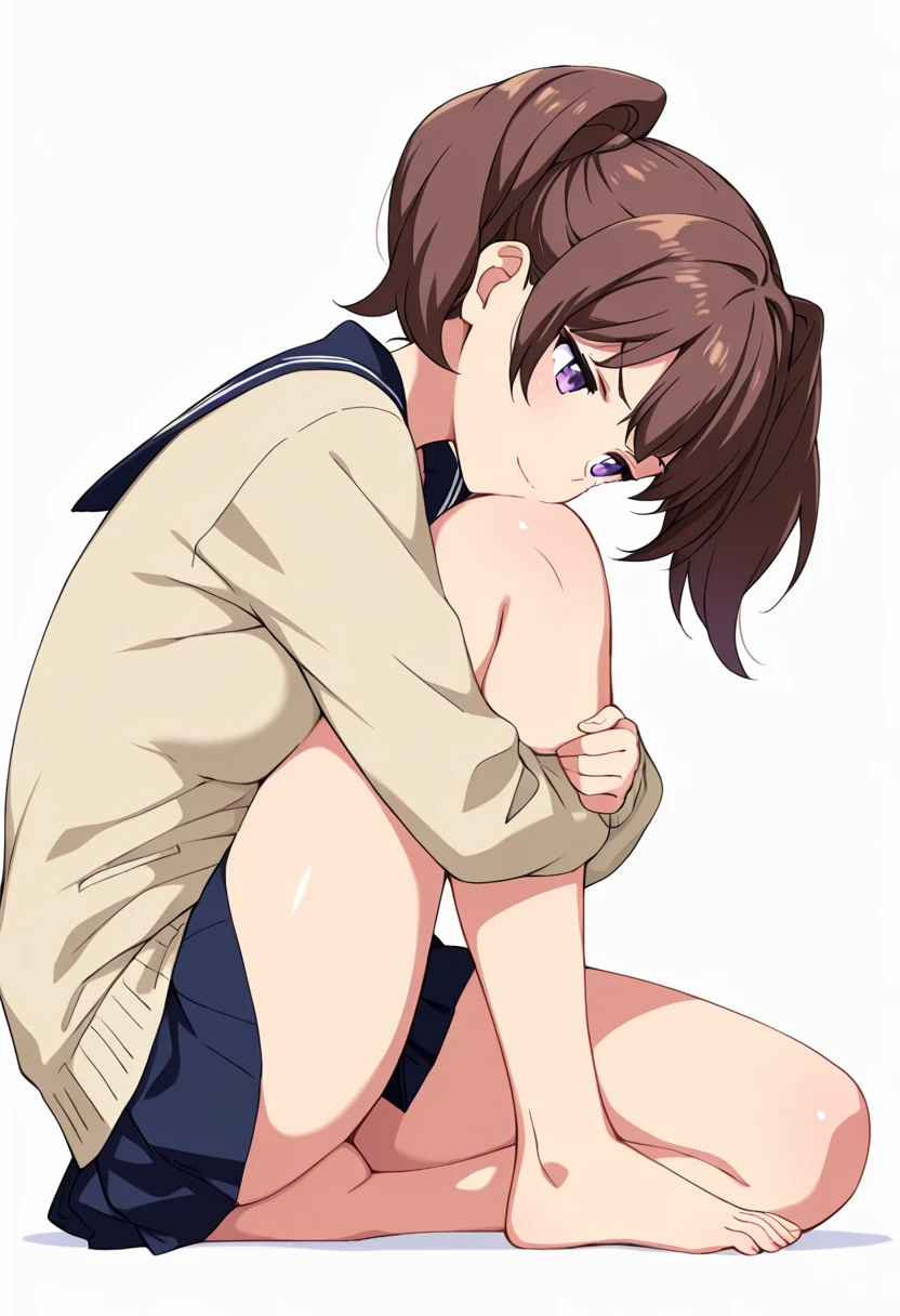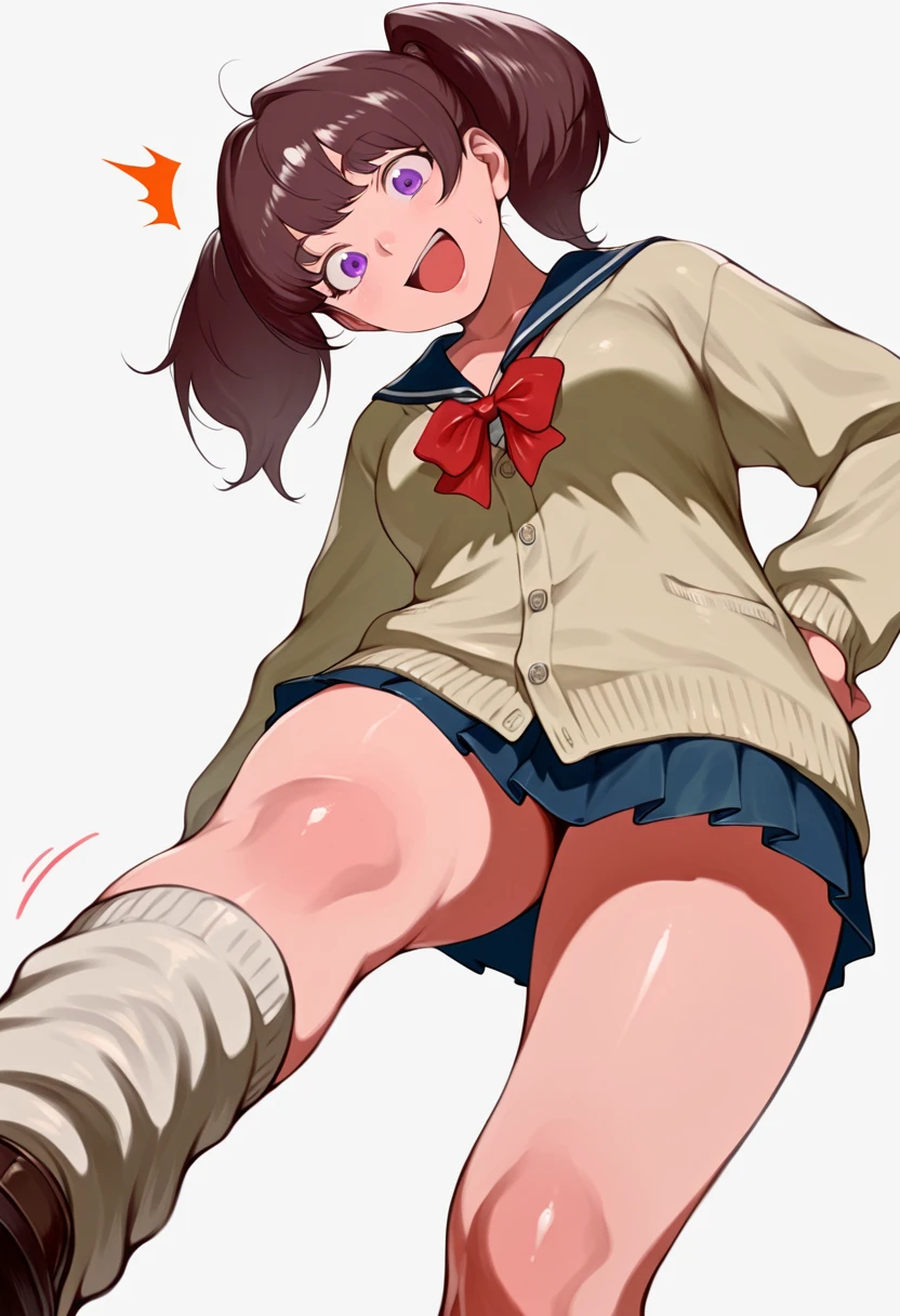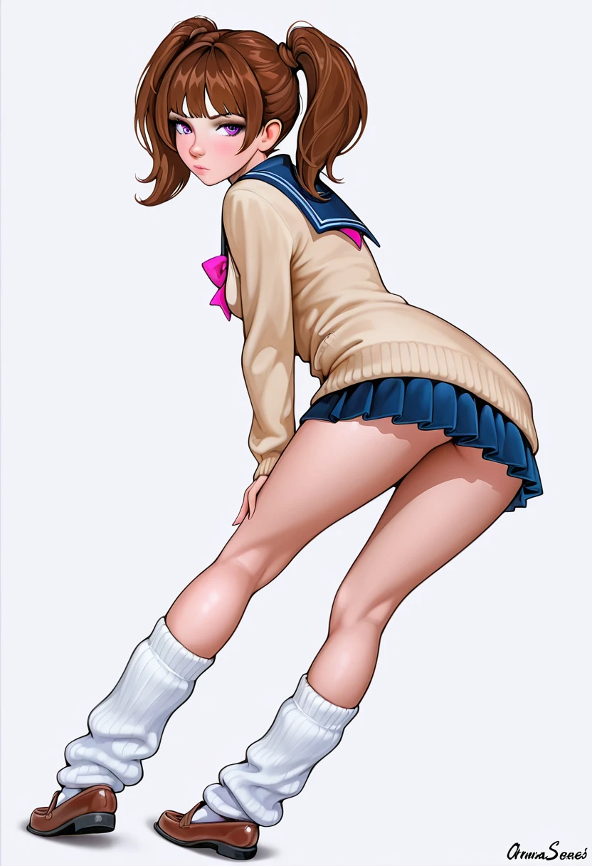 mihiro_cnr, 1girl, brown hair, purple eyes,twintails,👗Default Outfit