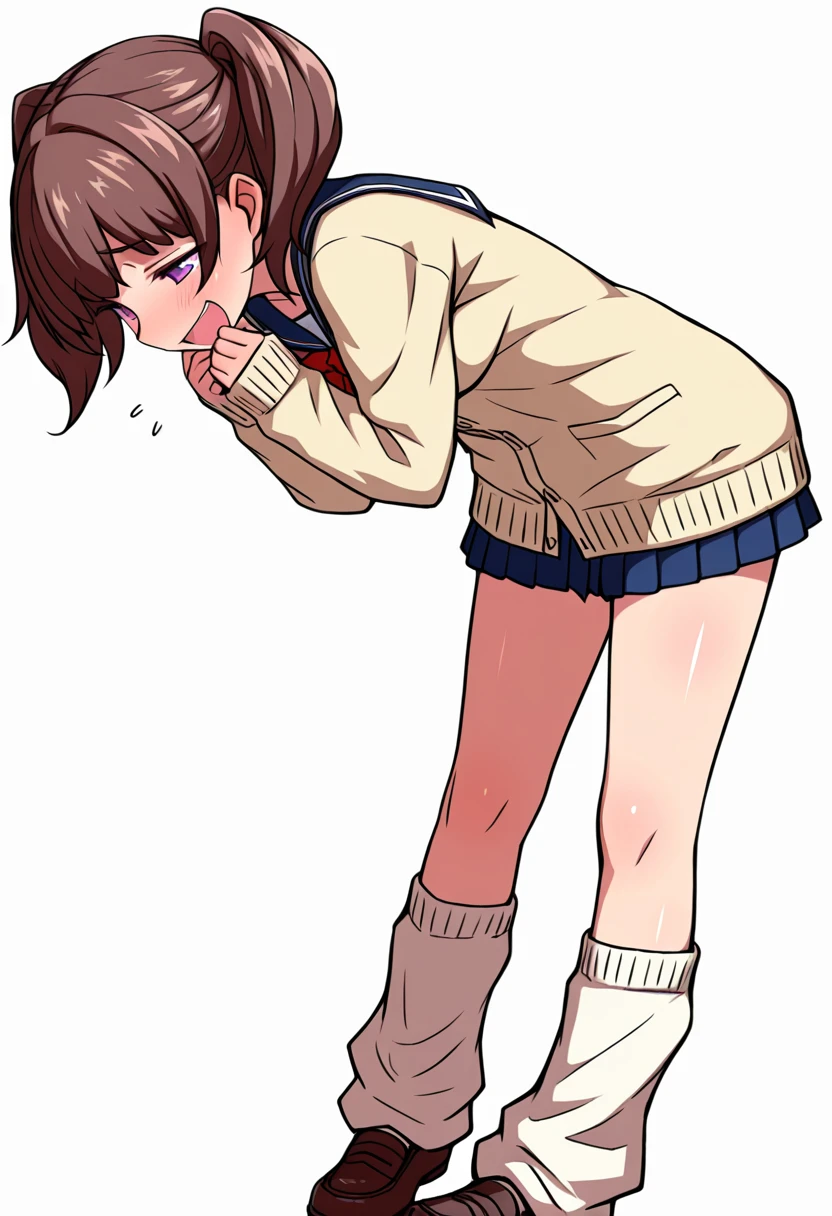 cardigan,pleated skirt,blue miniskirt,serafuku,bowtie,leg warmers,loose socks,loafers,Explanation and notes below👇