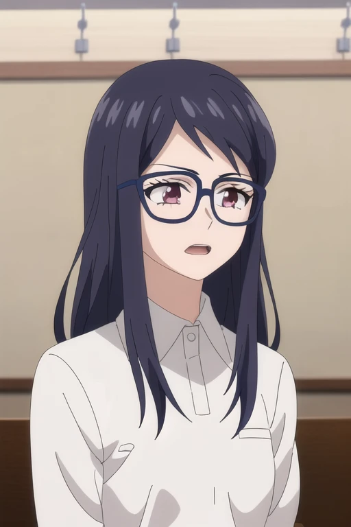 Trigger Words: nakamura chizuru, long hair, glasses, dark purple hair, reddish-pink eyes