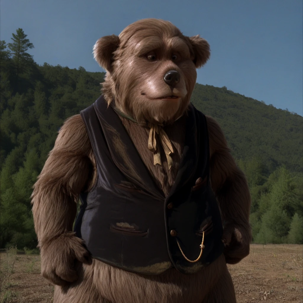 Trained LORA of Henry Dixon Taylor, the band manager of The Country Bears from the 2002 movie "The Country Bears" itself. Like the other bear models I've done from this movie, this works OK with Pony, but seems to work best if specifically used with Indigo Void Furry Fused XL, anything else I would once again take with a grain of salt. Mixed in variations with the vest, no clothes, and wearing a top hat. This model unfortunately seems to be a bit all over the place at times when it comes to what gets generated, so I apologize about that. Best if used with Euler a sampler.