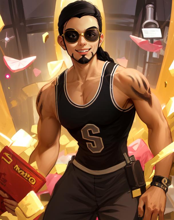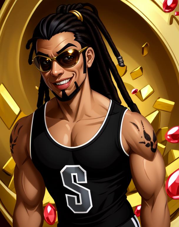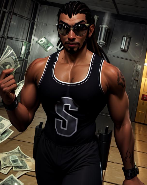 strike, black hair, goatee, dreads, dark shades, tattoos,