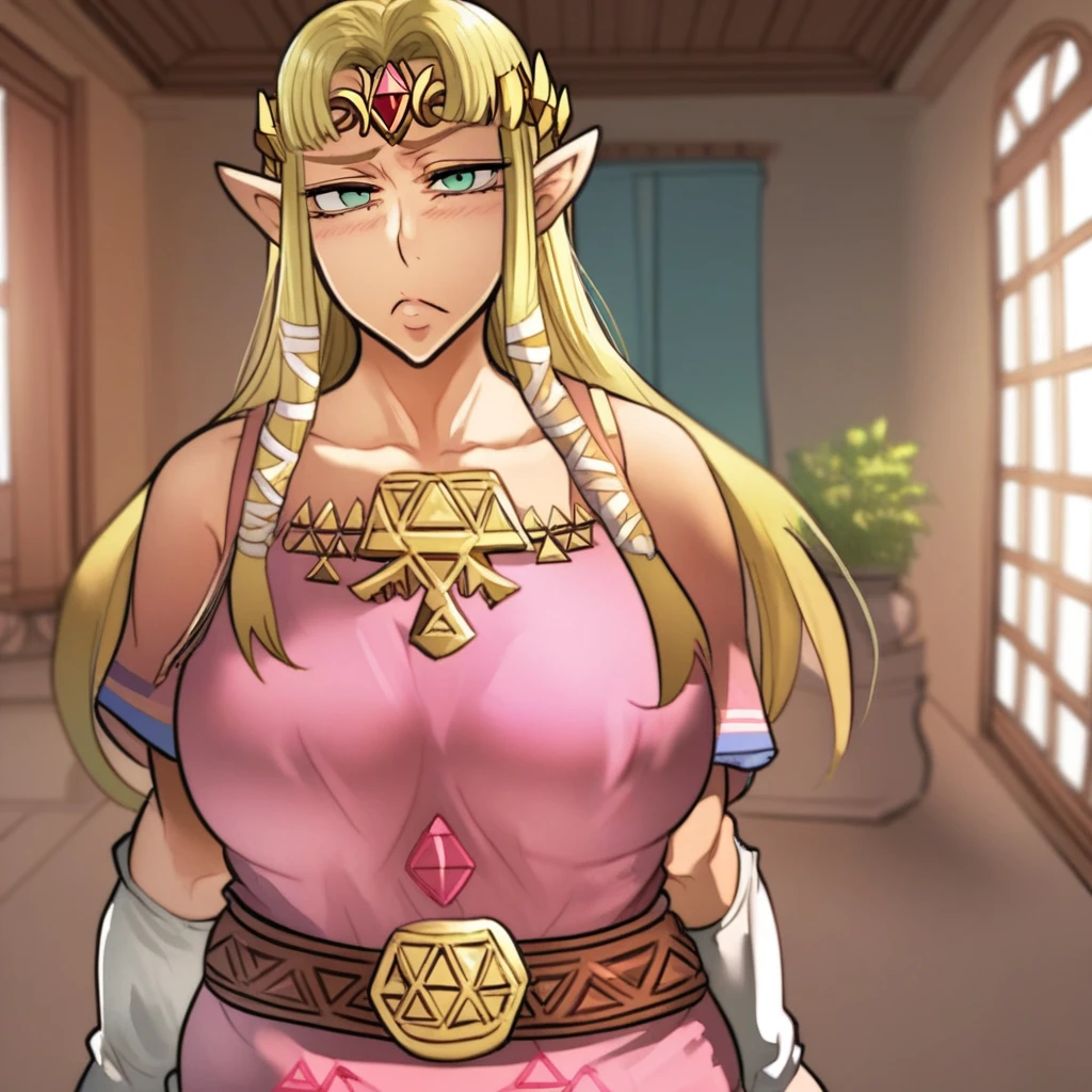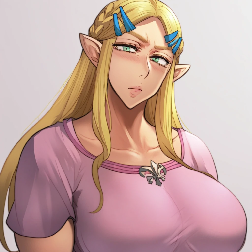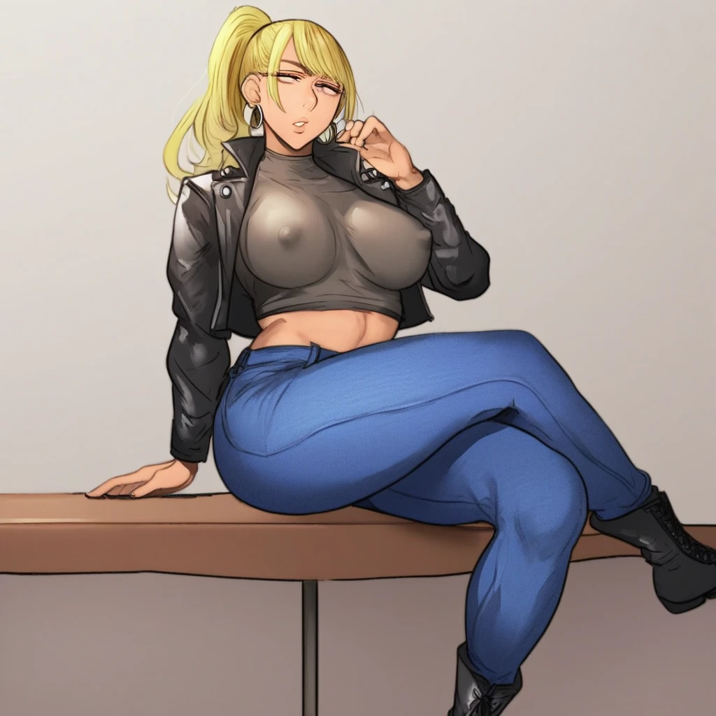 thigh highs, female pubic hair, mature female, pubic hair, solo, huge breasts, nipples, navel, blush, large areolae