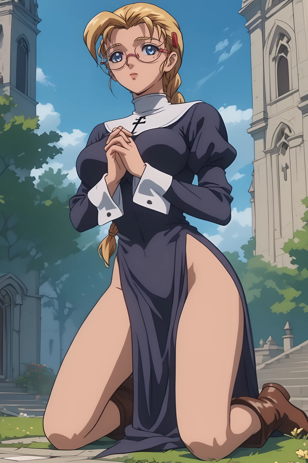 Miu_Fūrinji, 1girl, blonde hair, large breasts, mole under eye, blue eyes, breasts large