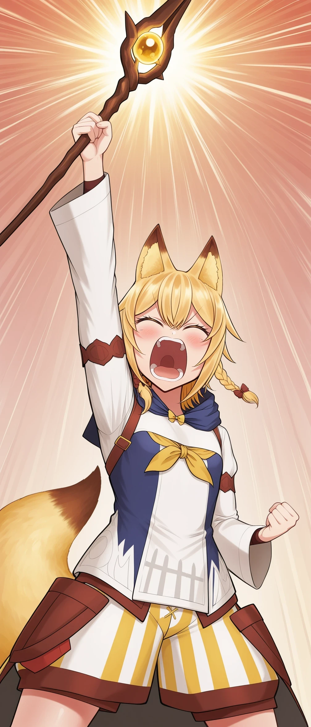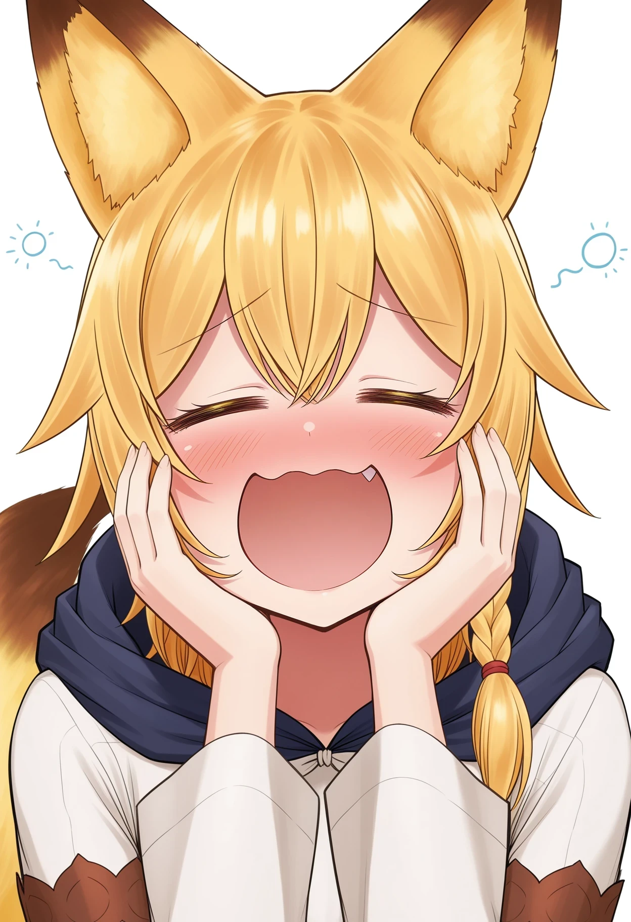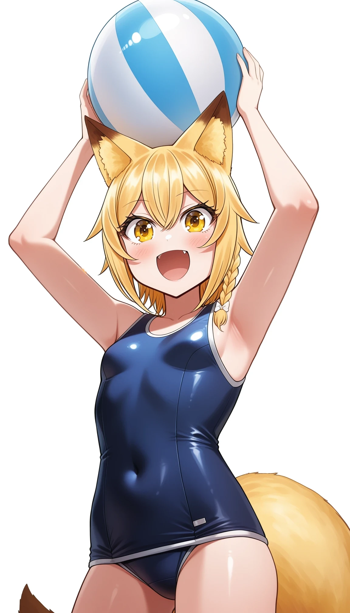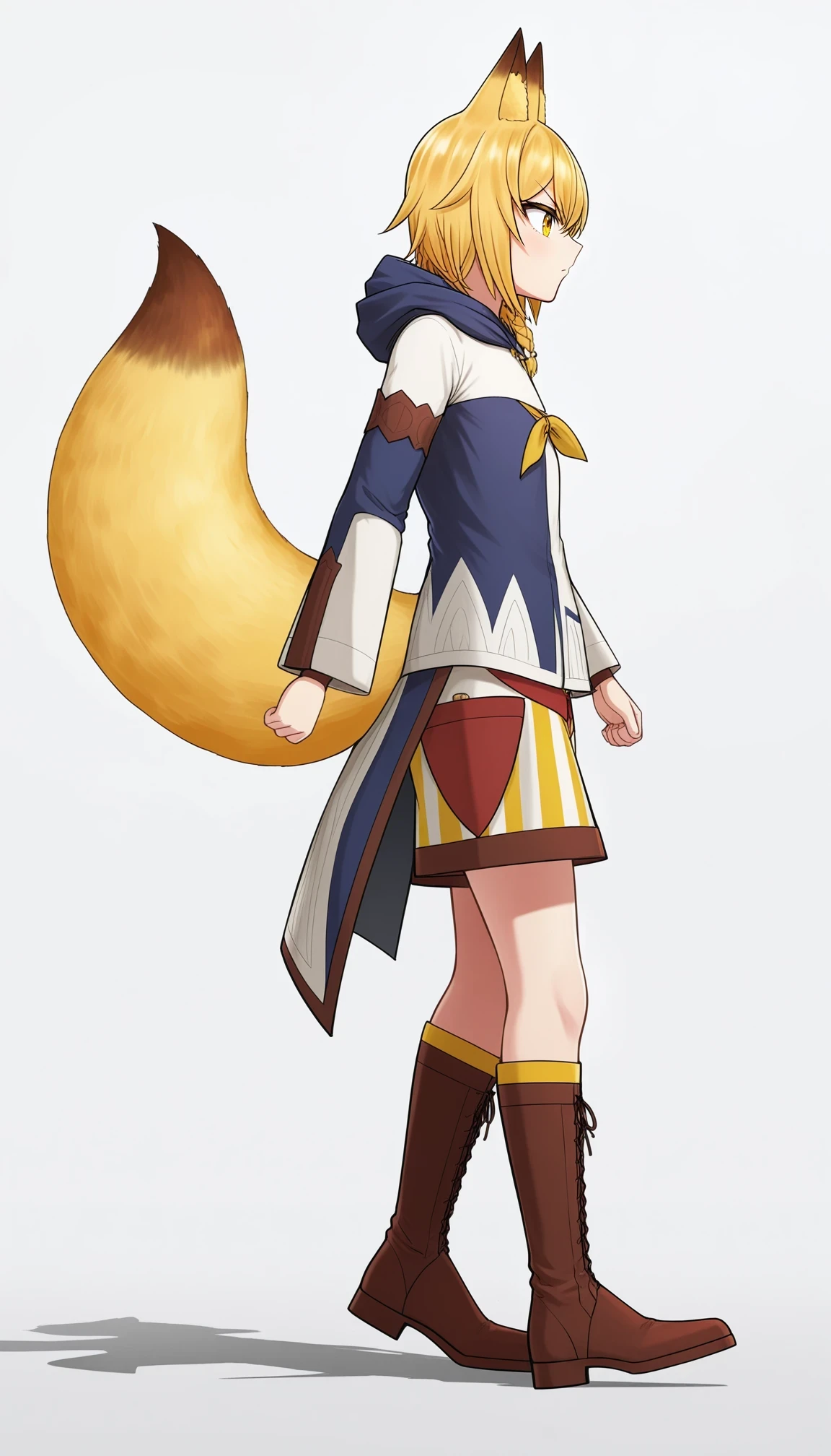jpSistersEunice,blonde hair,yellow eyes,side braid,single braid,hair bow,fox tail,