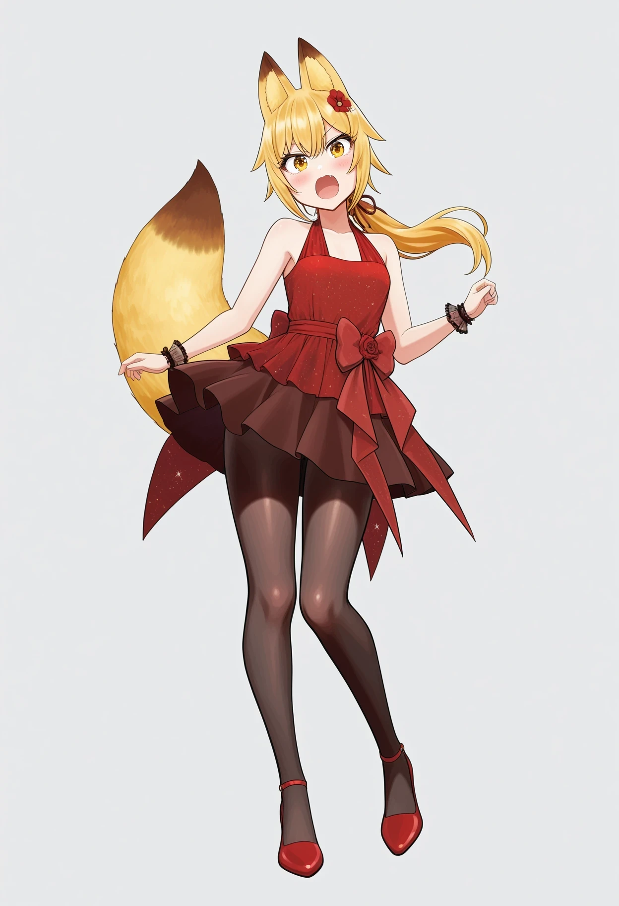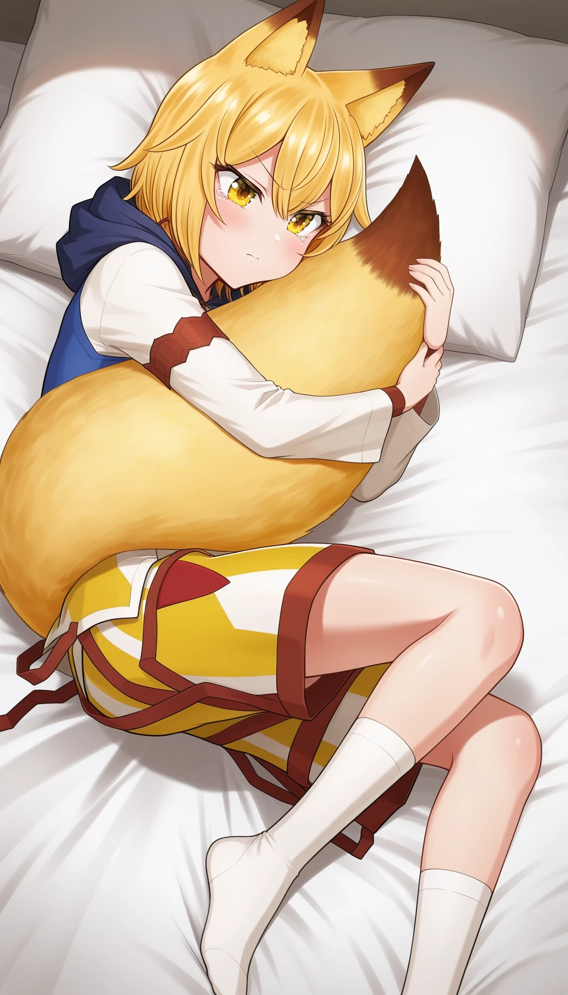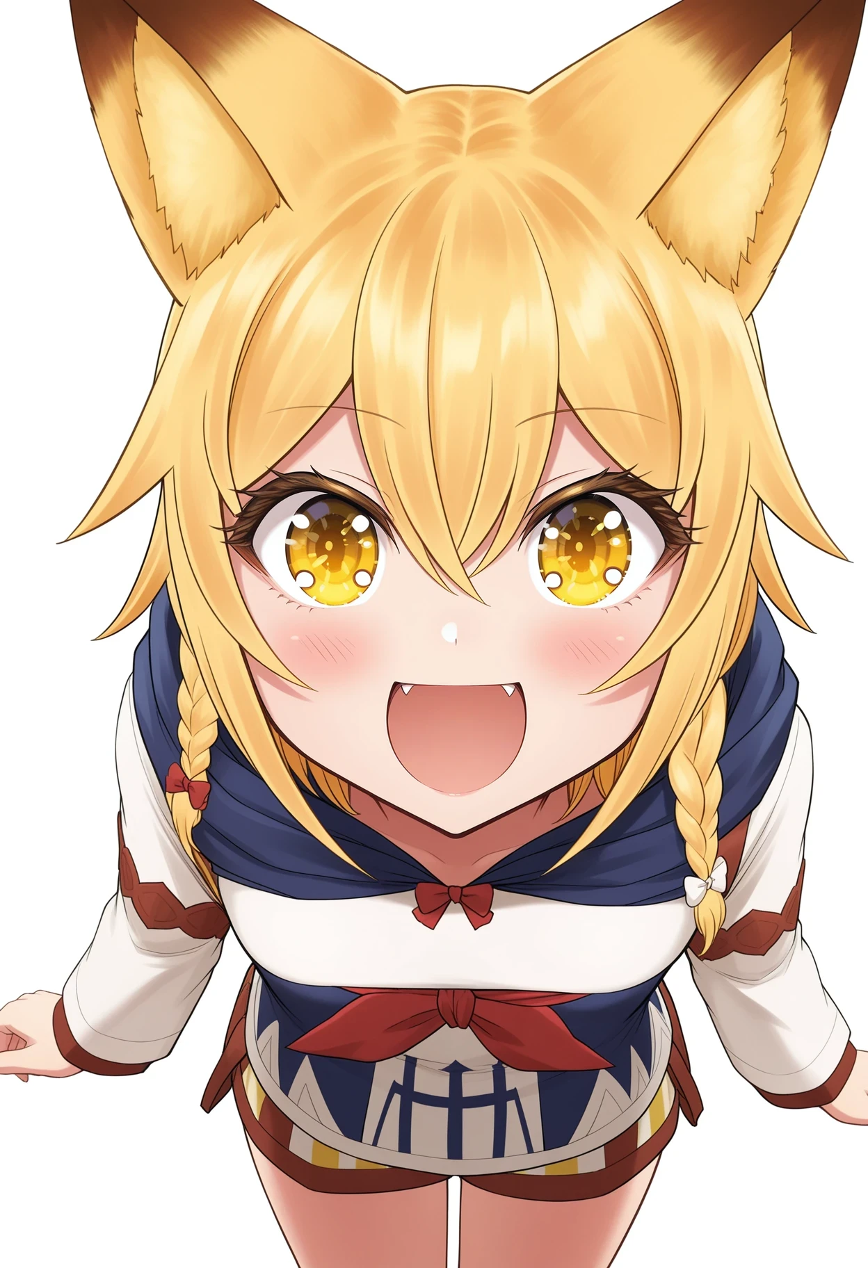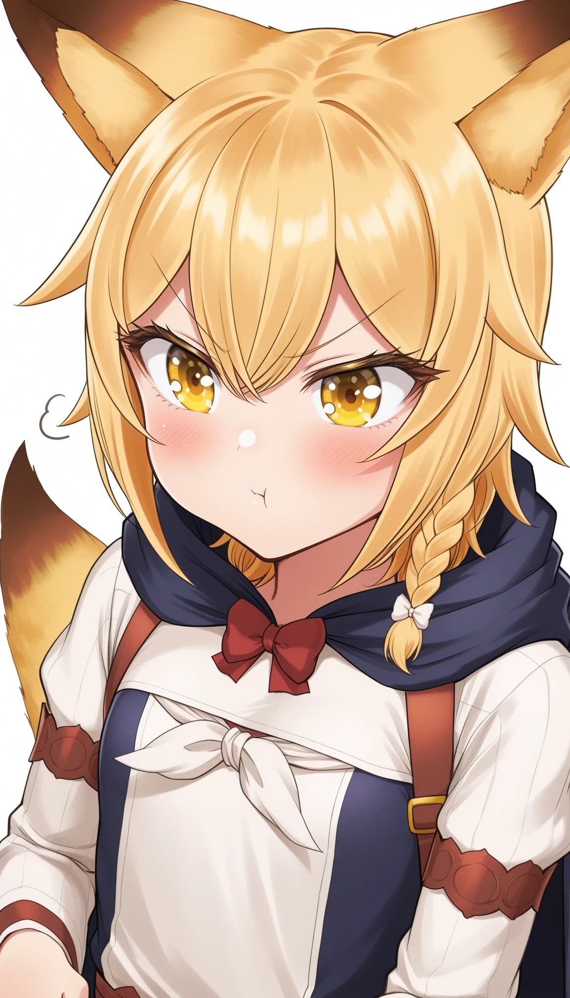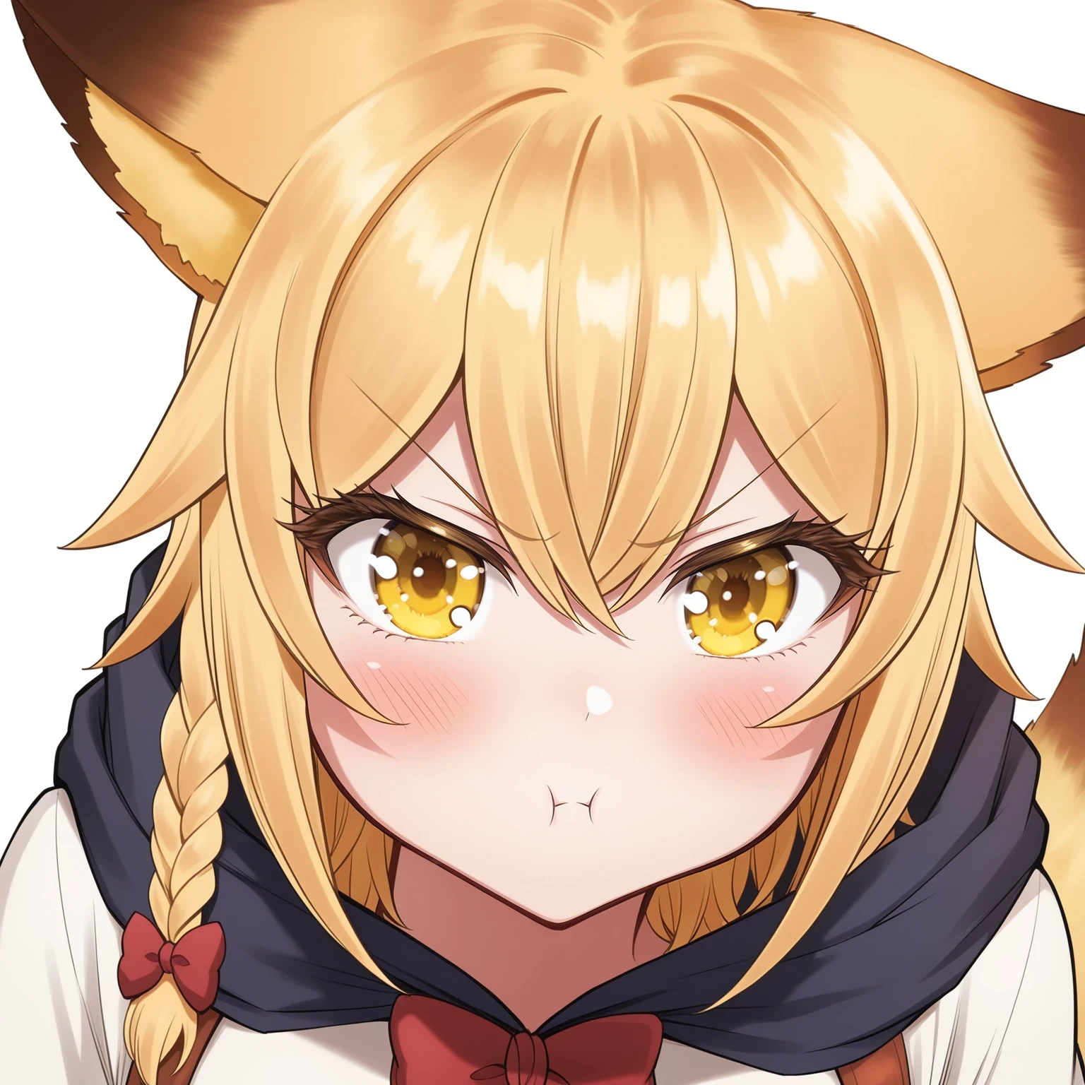 jpsisterseunice,blonde hair,yellow eyes,side braid,single braid,hair bow,fox tail,