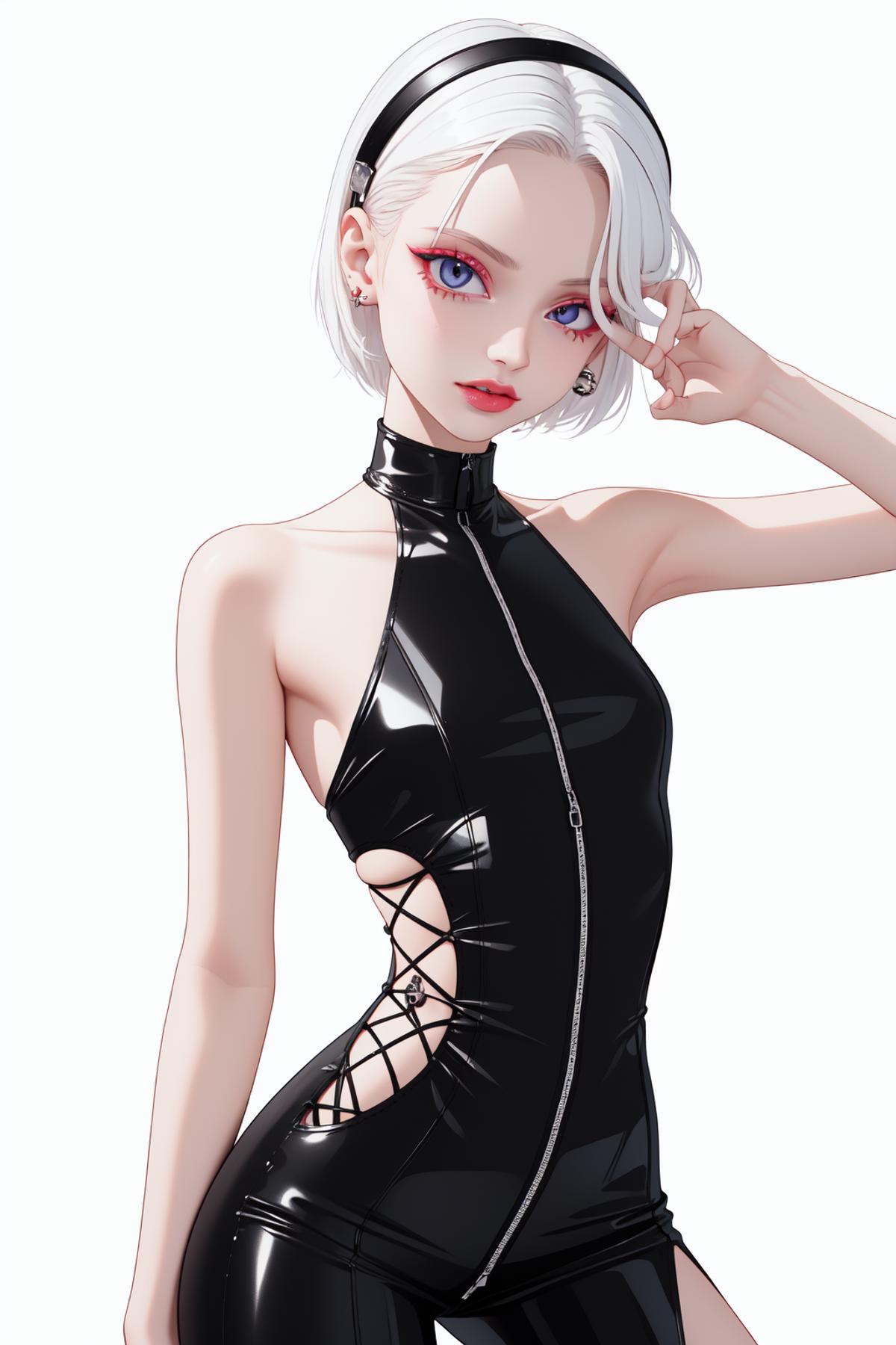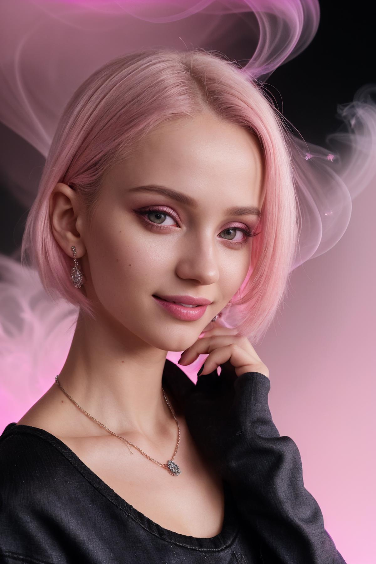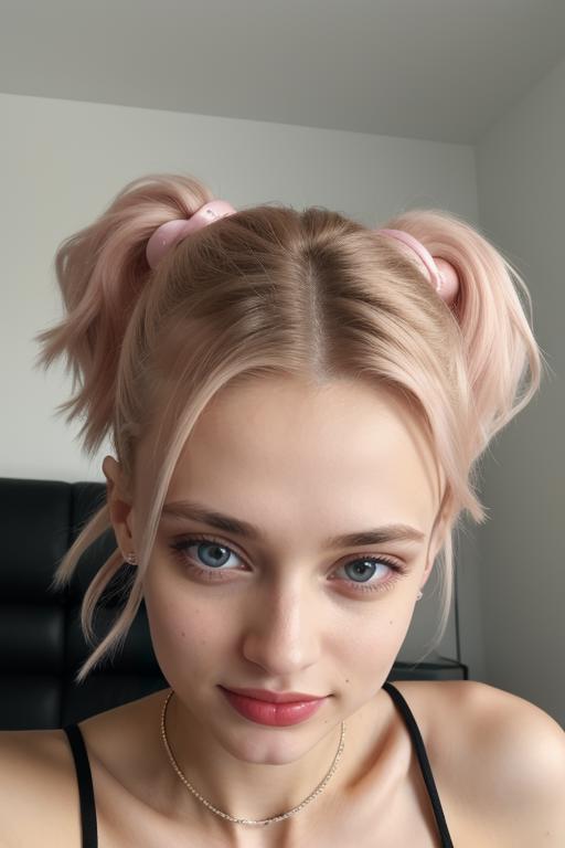 Her body type is trained to be very flexible with your prompts and so is her hair.