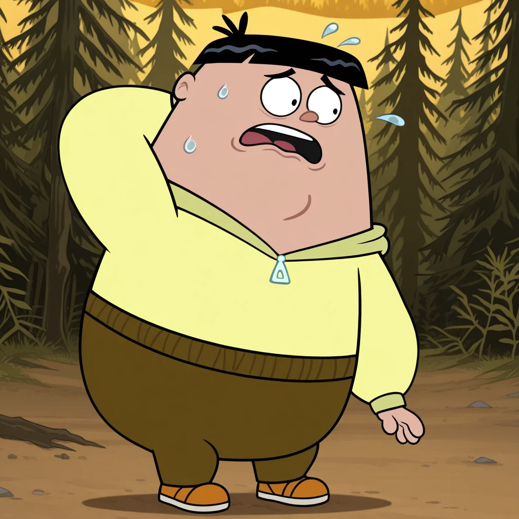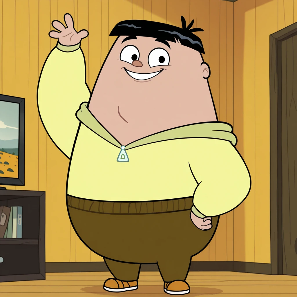 1boy, male, solo, human, young, black hair, short hair, black eyes, small ears, chubby