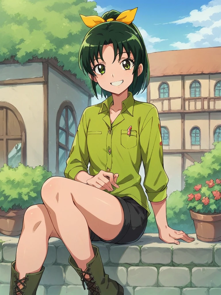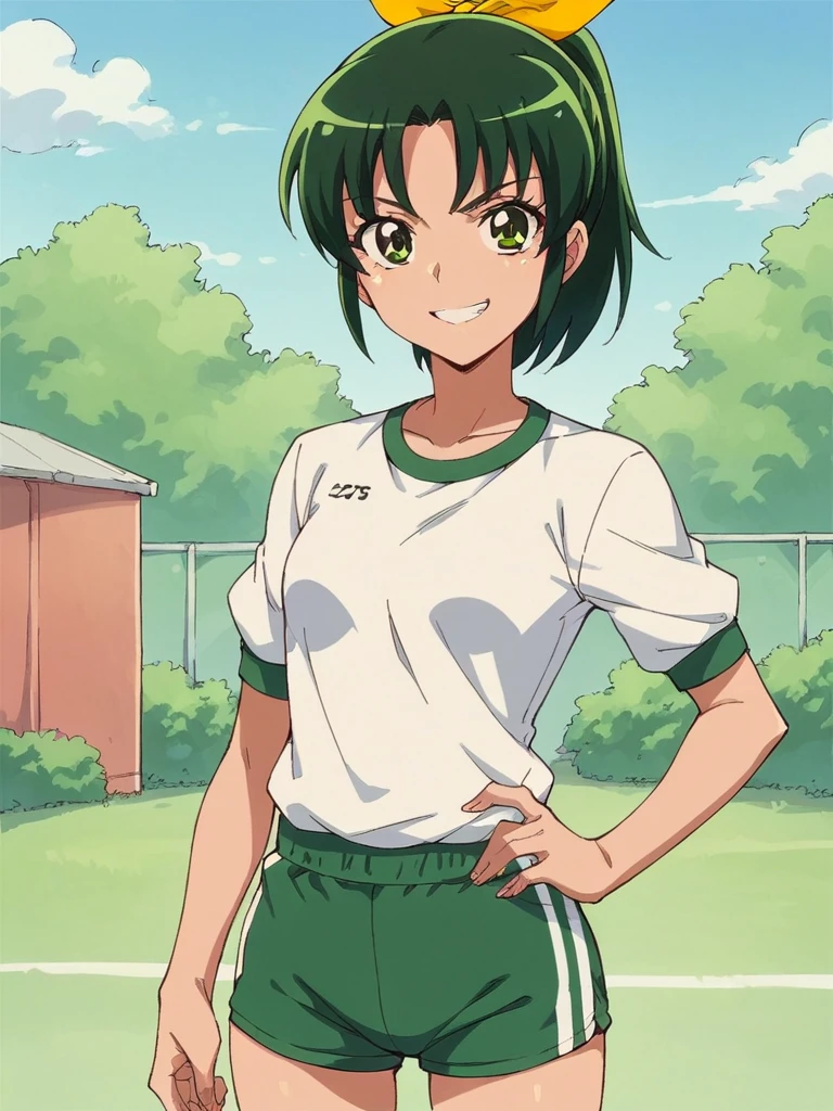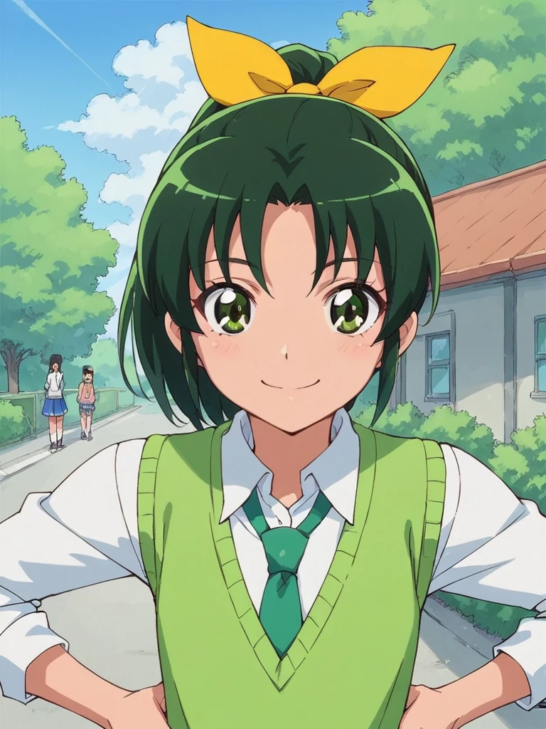 Midorikawa Nao, green hair, yellow hair bow, green eyes,