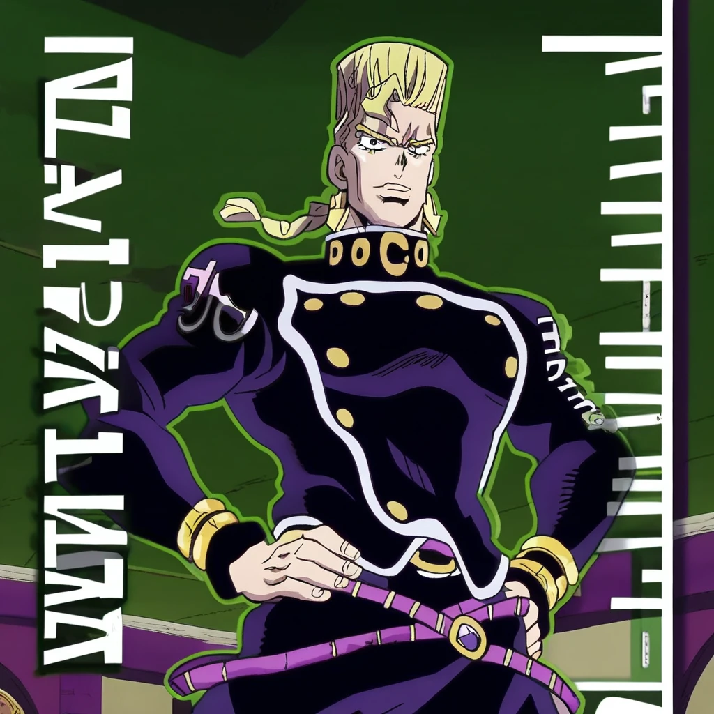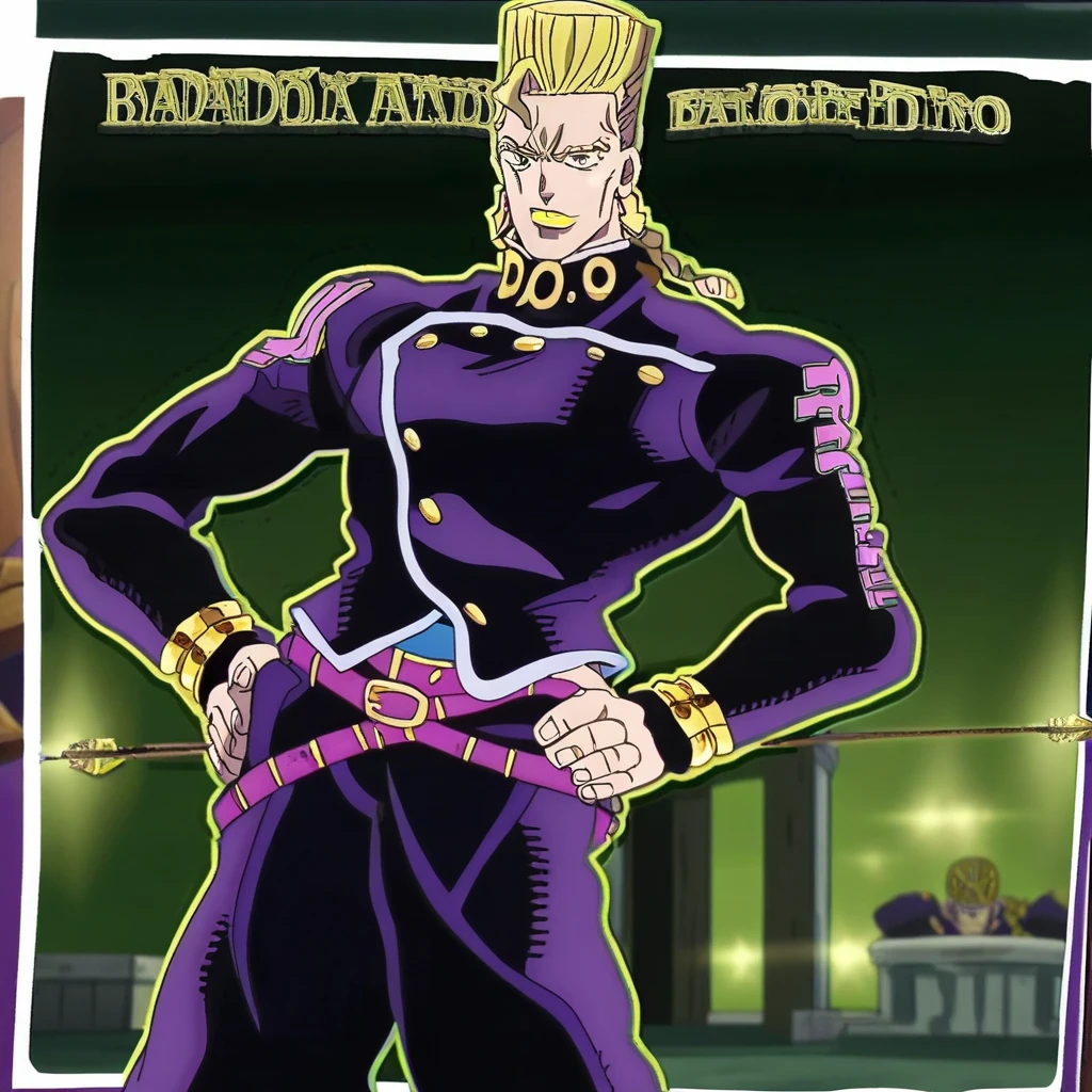 Blonde hair, Braid, flat-top hairstyle, green eyes, Gakuran, JoJo, male, jewelry, arrow earrings, pink belts, black baggy pants, Keicho Nijimura, JoJo style