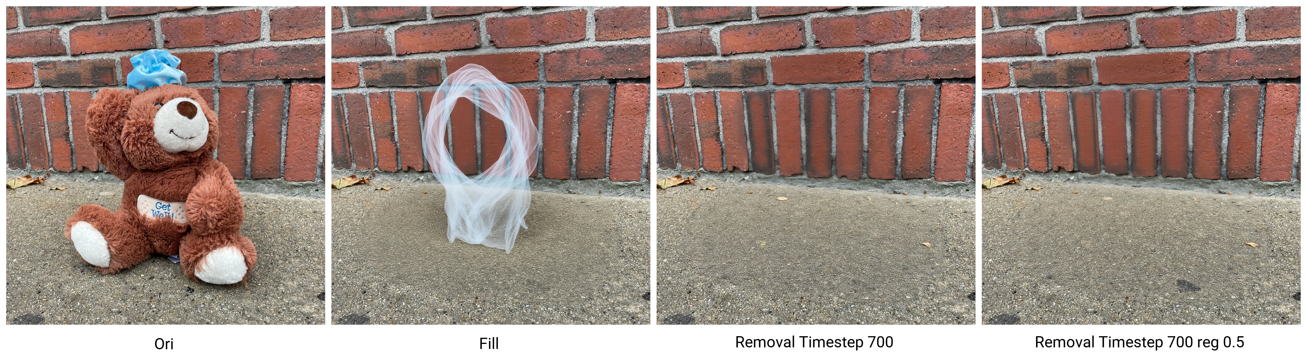 The model was fine-tuned on a small dataset of images with corresponding masks, focusing on object removal tasks. The dataset includes various objects and scenes to ensure robust performance.