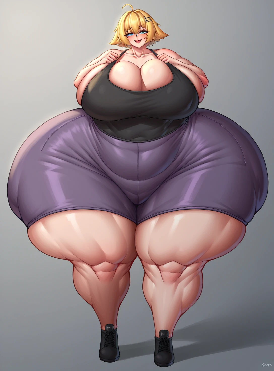 Produces girls with a body that looks like a hyper bastardization of the venus bodytype, enlarging it and thickening it to the extreme, while taking care of keeping the overall hourglass shape. While the girls it creates are beyond a doubt overweight, it attempts to avoid excessive fat rolls, giving the impression that the midsection is larger as the foundation for the much larger top and bottom halves of the body, rather than being conventionally obese.