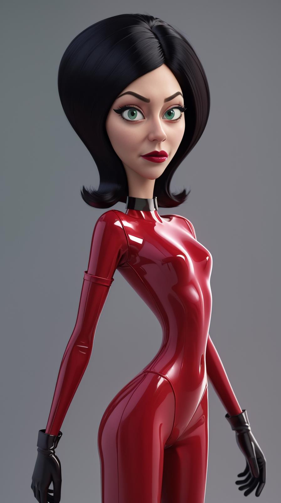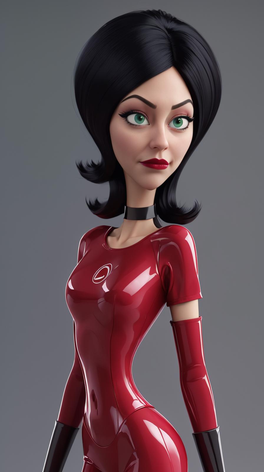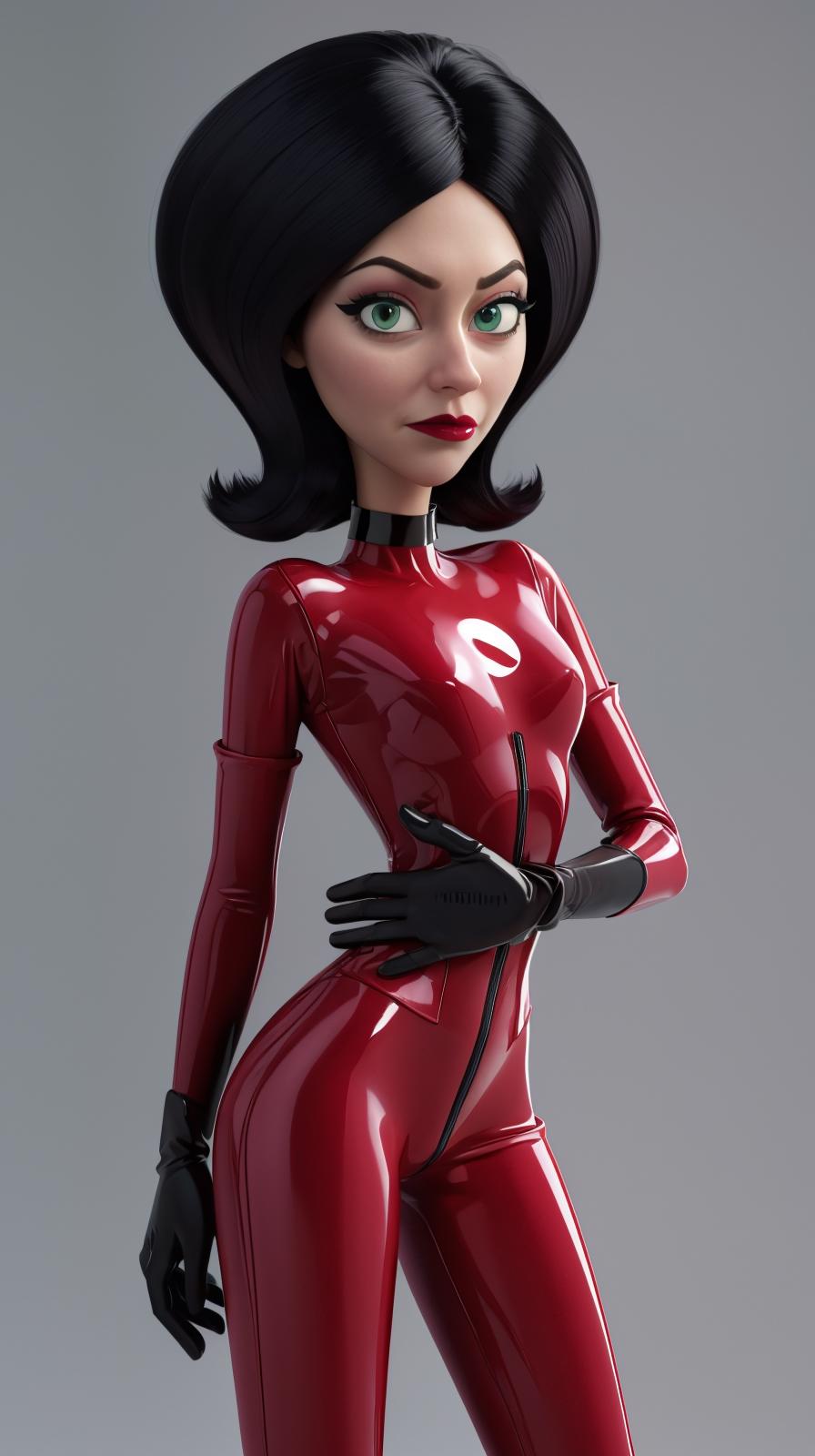 • Add "choker, red dress, red skirt, strapless, elbow gloves, lipstick" for her typical look.