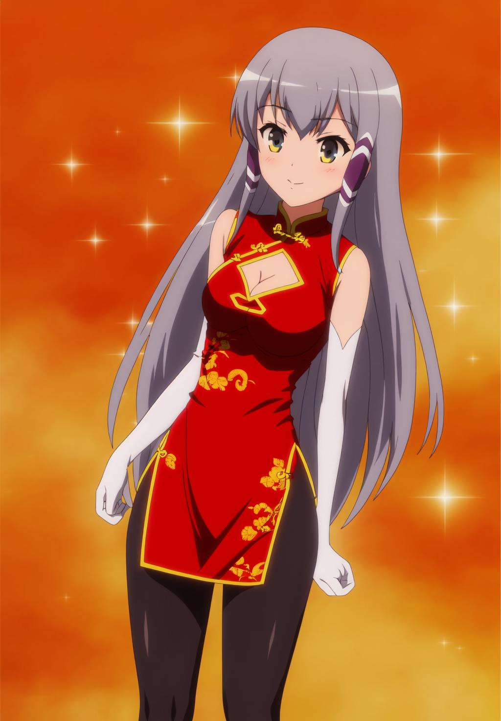 chinese clothes, cleavage cutout, china dress, red dress, black pantyhose,
