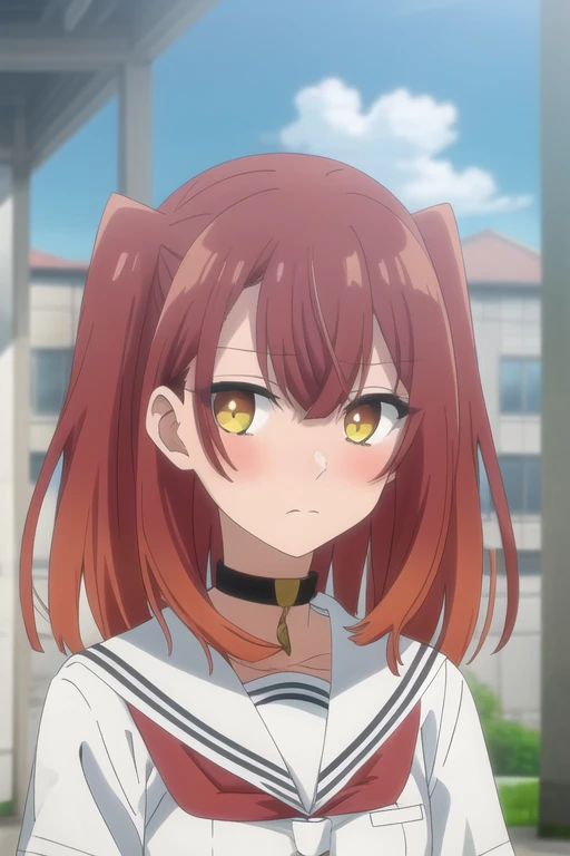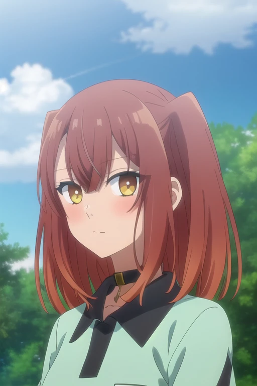 Trigger Words: yashiro miko, medium hair, red hair, yellow eyes