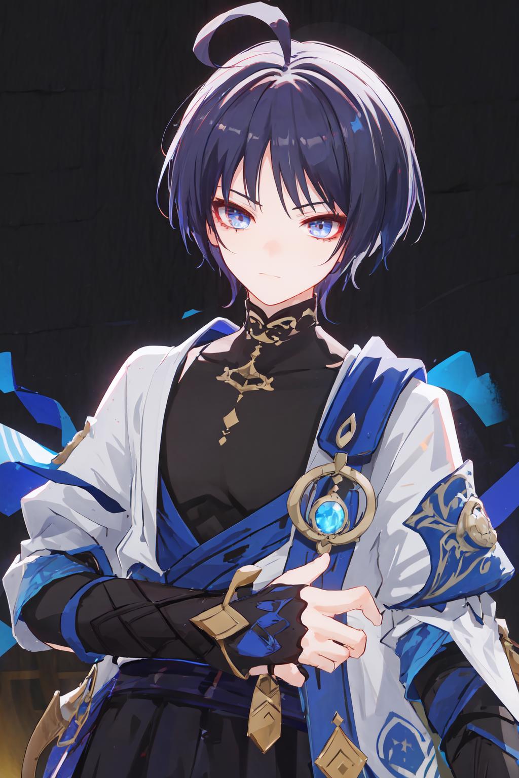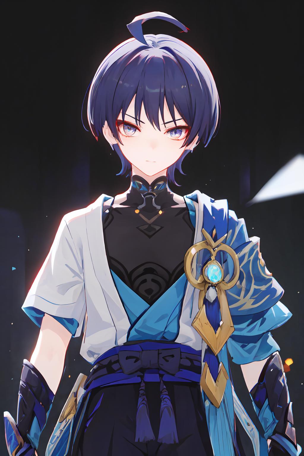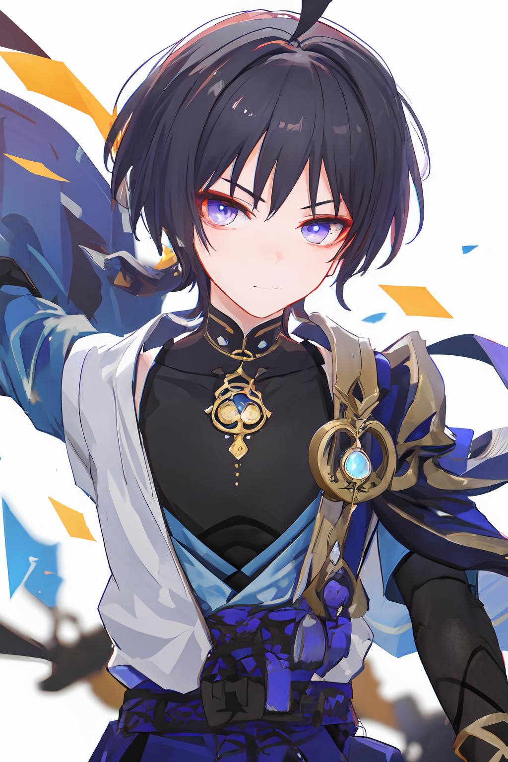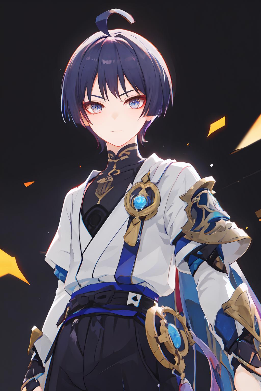 masterpiece,best quality,1boy,sanbing,solo,sidelocks,male focus,upper body,ahoge,blunt ends,looking at viewer,Simple background,cowboy shot,