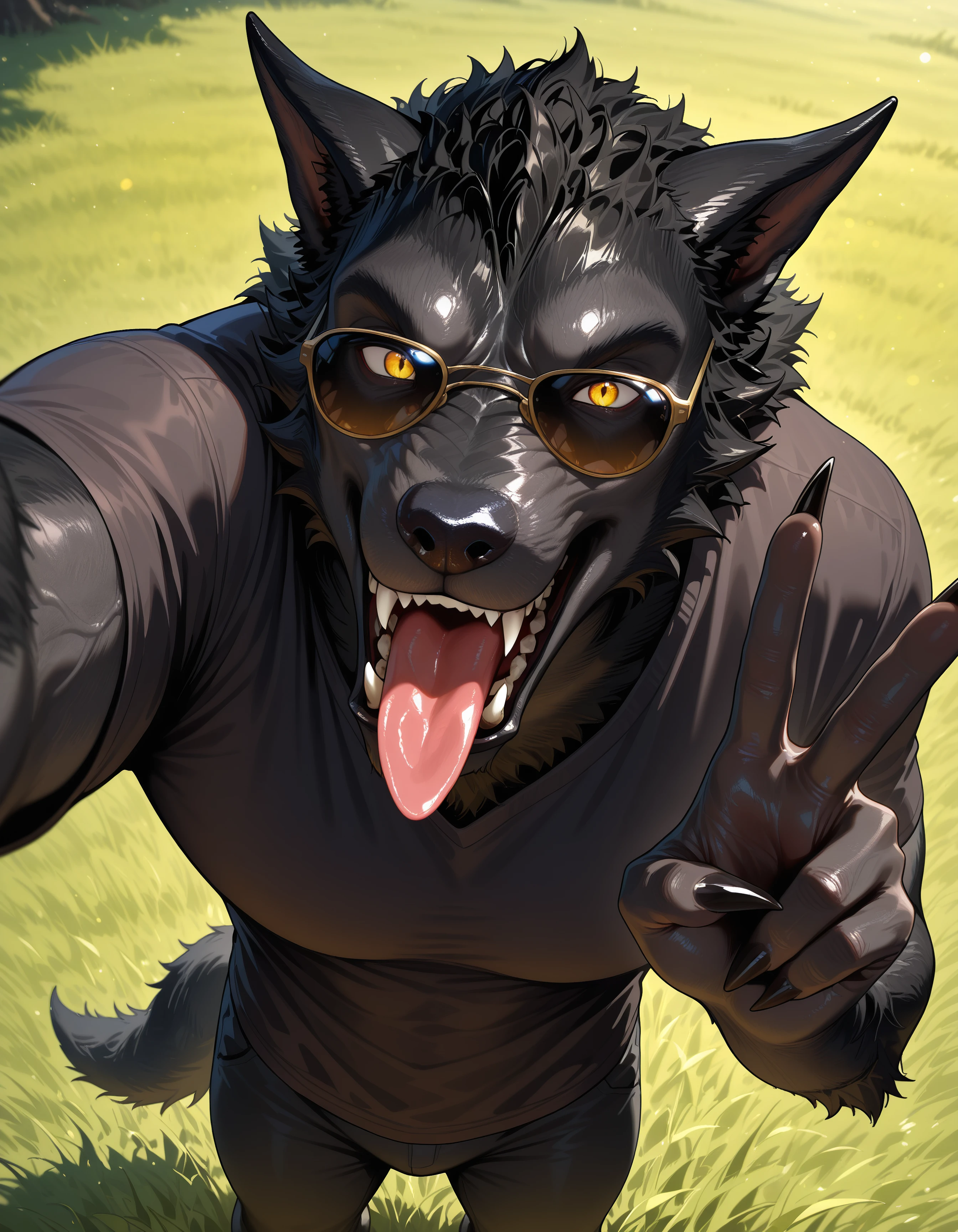 skyrim werewolf, werewolf, anthro, fur, yellow eyes, black fur, black body