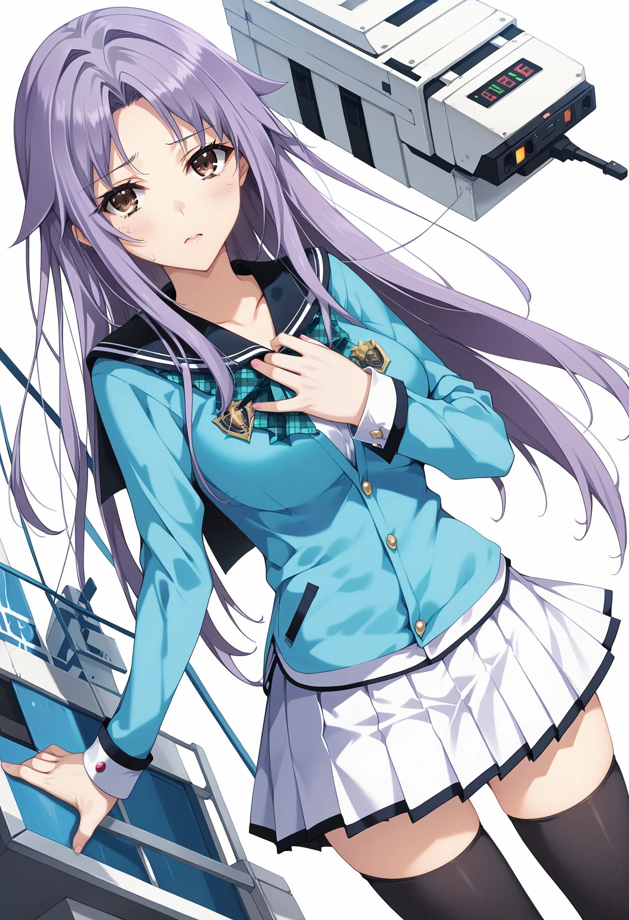 補助(衣装)プロンプト・light light blue uniform,white pleated skirt,black_thighhighs,loafers,