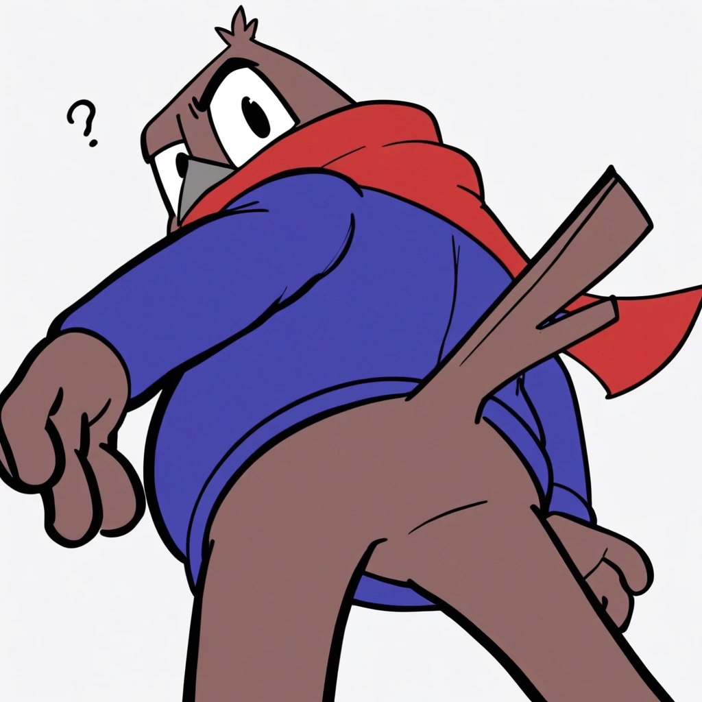 Nightingale, avain, bird, short, bird legs, thin legs, blue jacket, red scarf,
