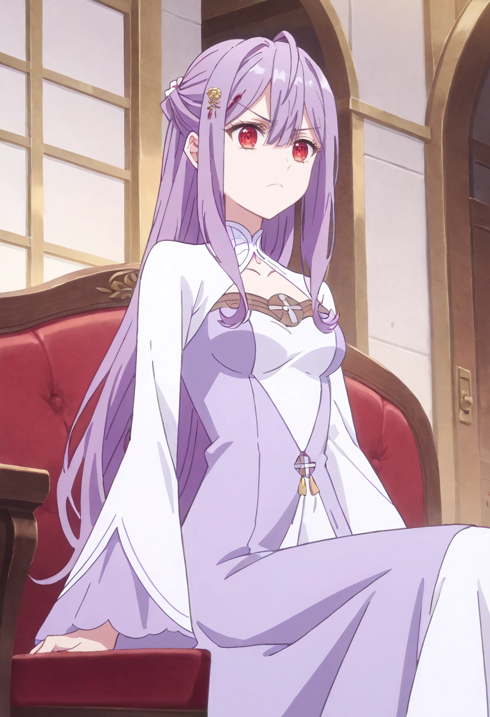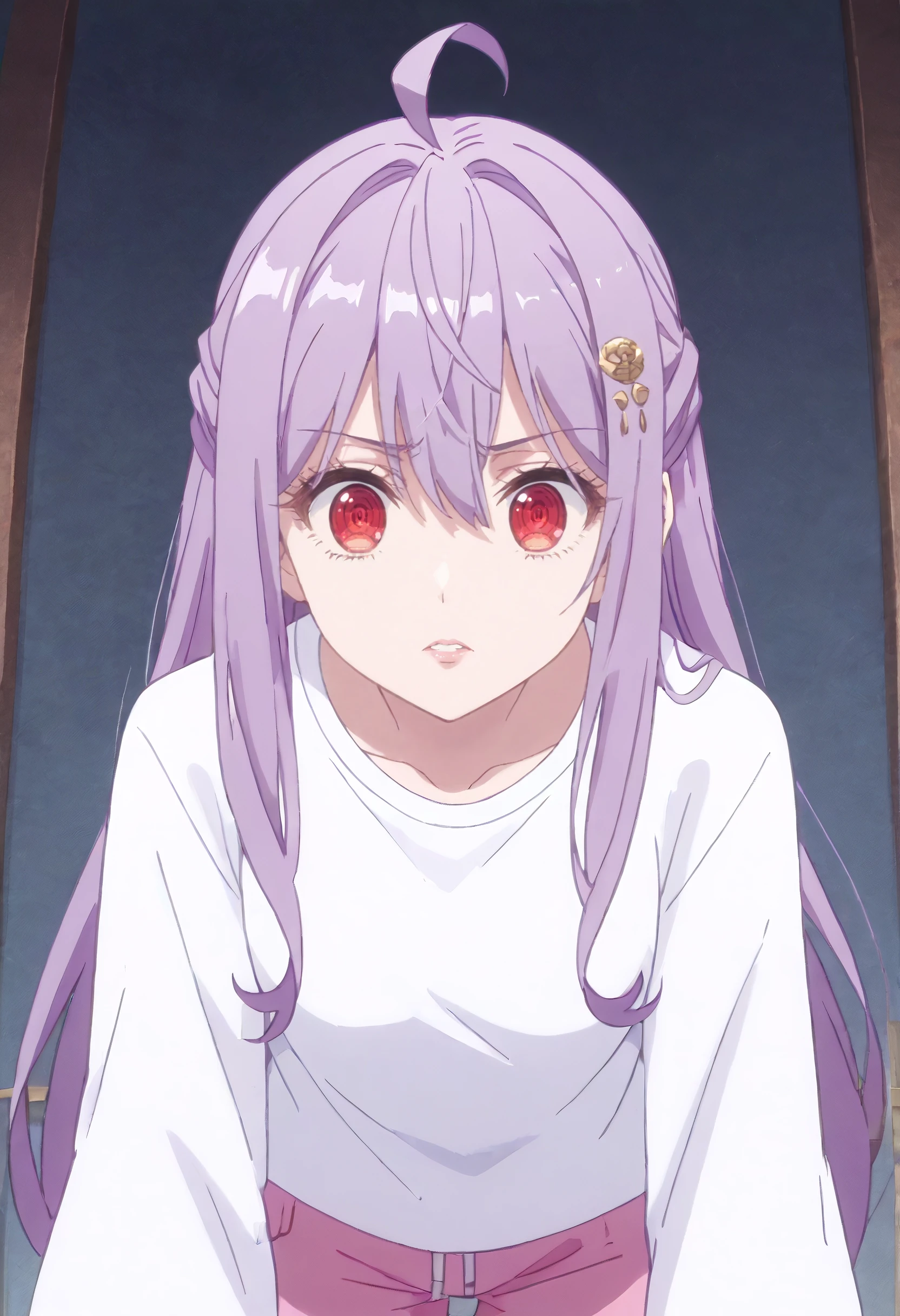 KTMia, purple hair, long hair, red eyes, sidelocks, very long hair, ahoge, hair between eyes,
