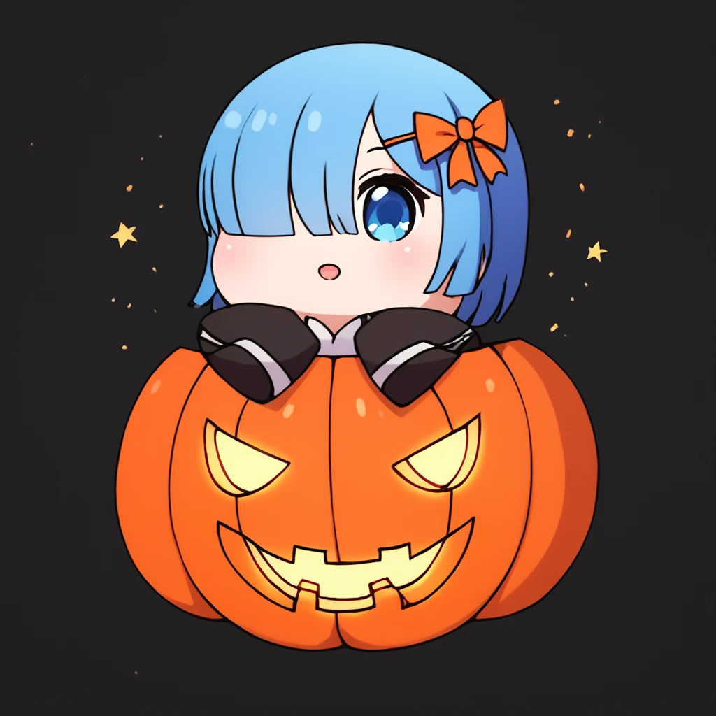 prompt : Jack-o'-lantern, inside pumpkin, orange pumpkin, chibi