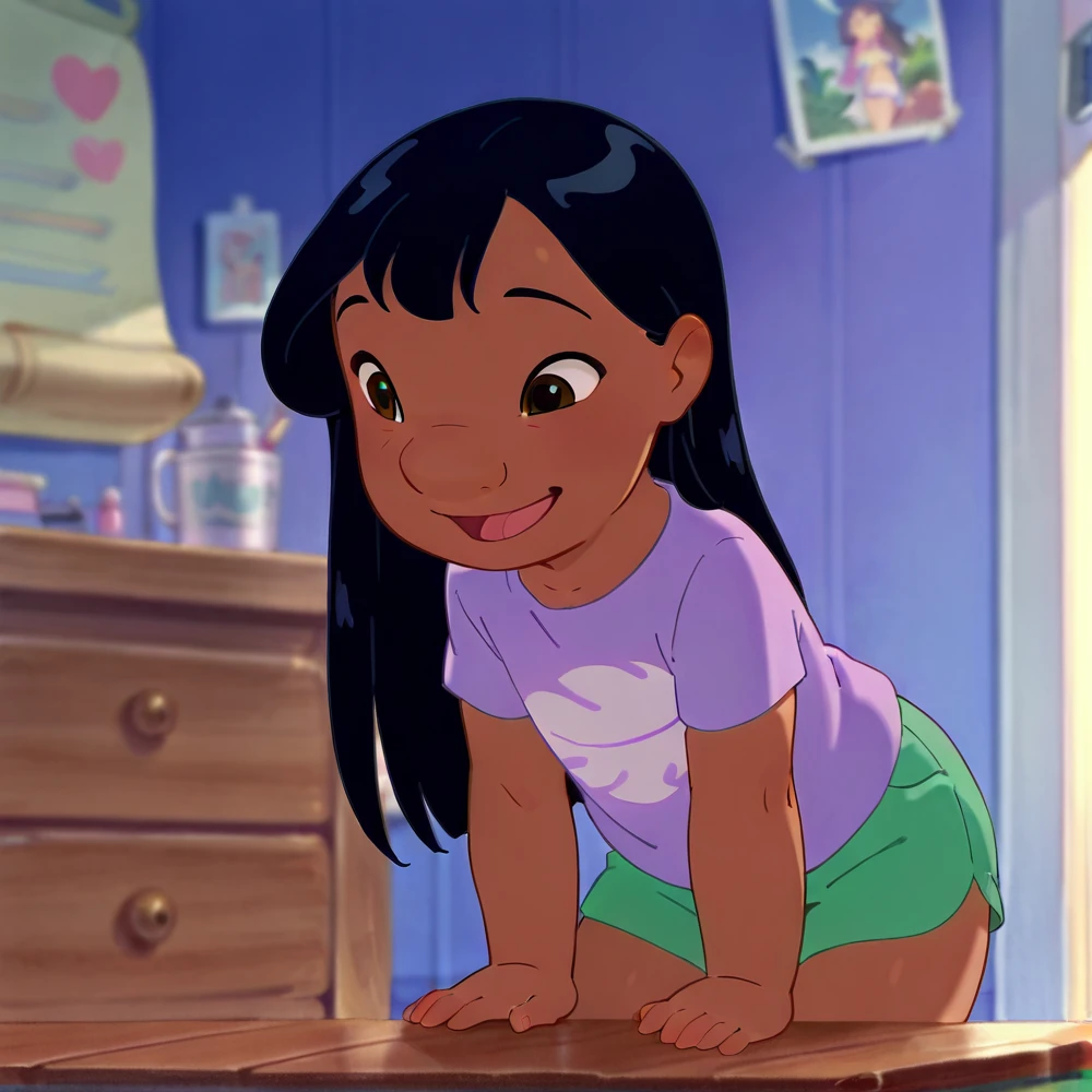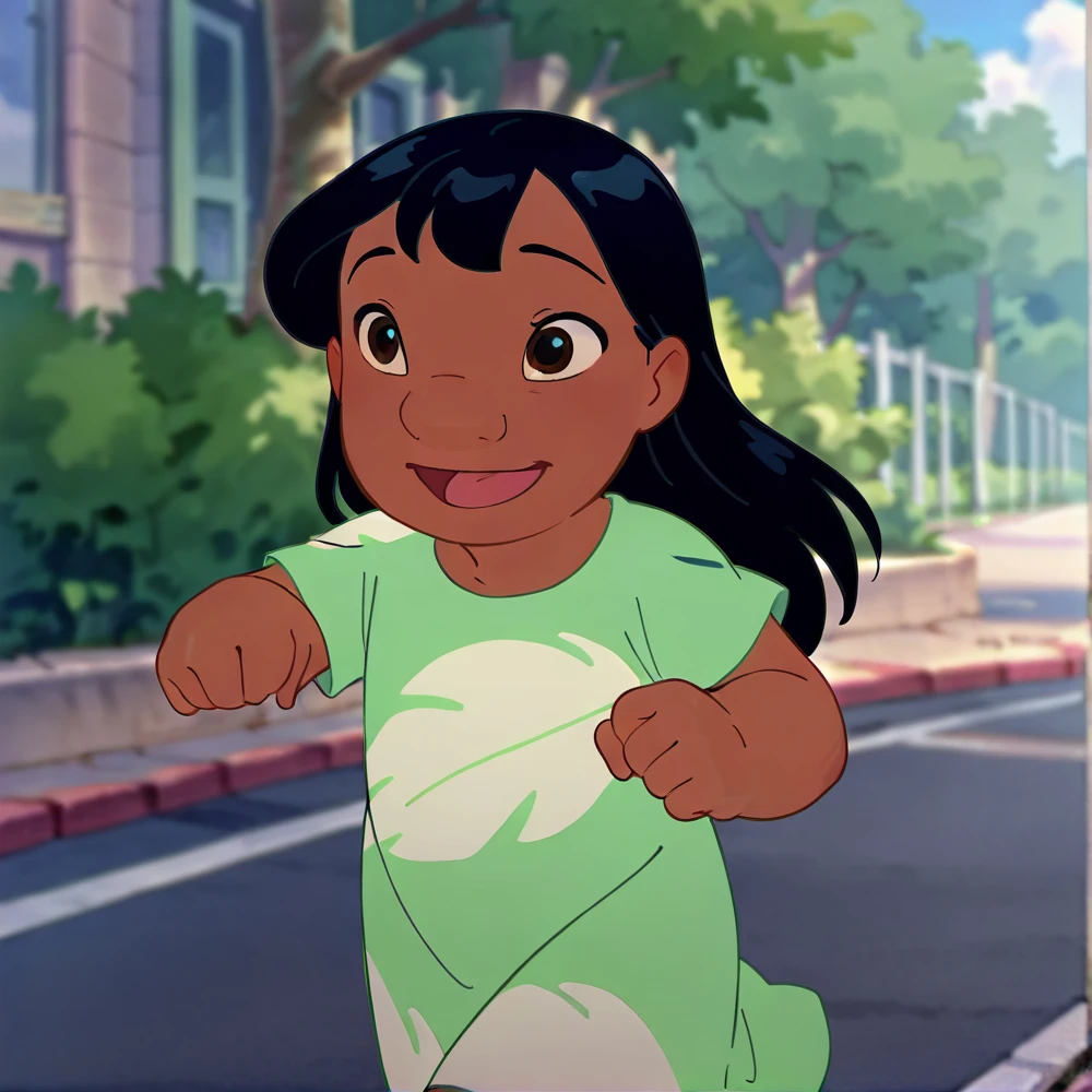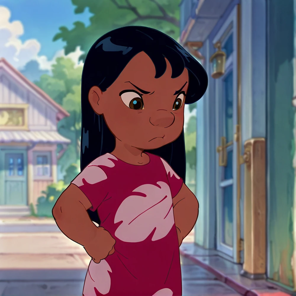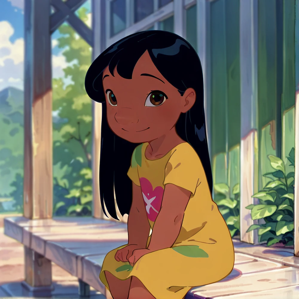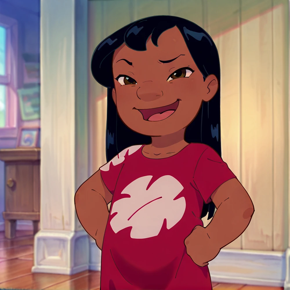 lilo_pelekai, long hair, black hair, dark skin, 1girl, brown eyes, red dress