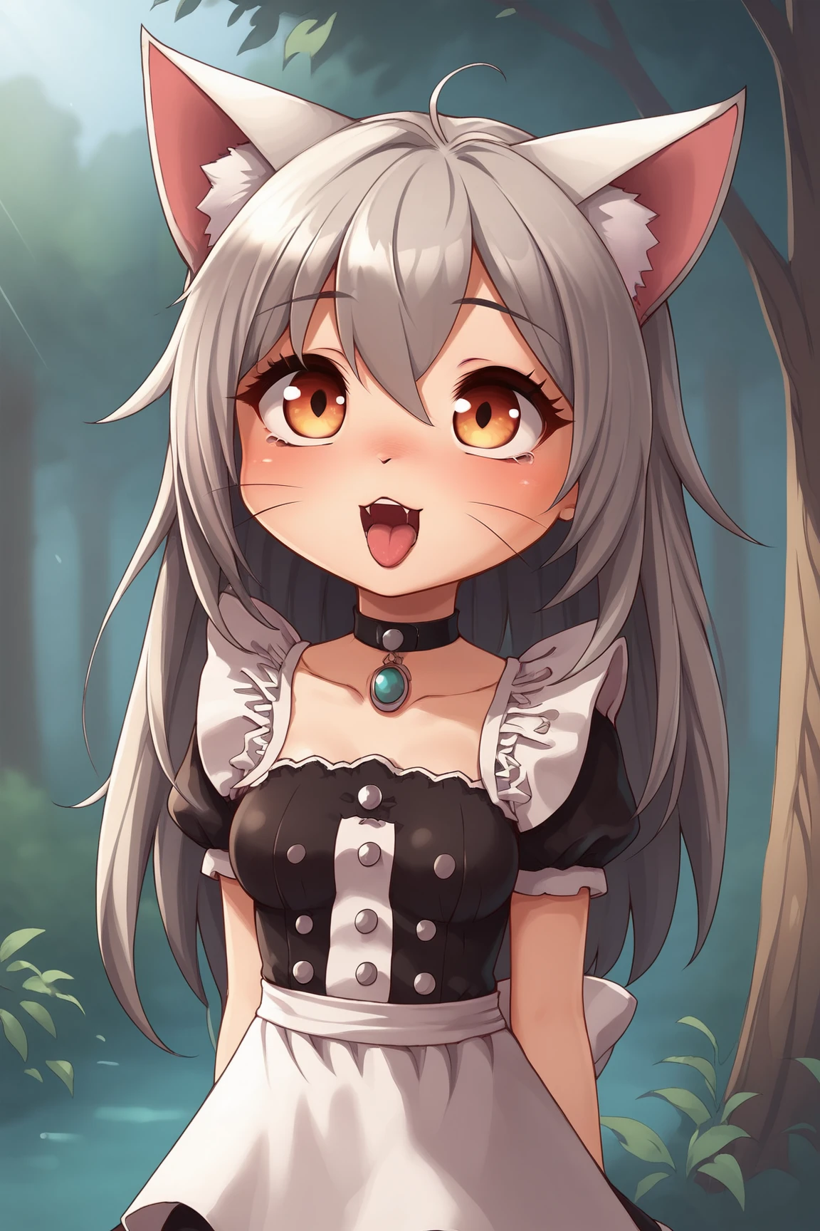 ➜ SamVTPXL, whiskers, brown eyes, grey hair, long hair, hair between eyes, bangs, ahoge, animal ears, cat ears, animal ear fluff, black choker, medium breasts, maid, black dress, short sleeves, white apron, black skirt, white thighhighs, black shoes]--|======[ 💗 My Settings: 💗 ]======|--[
