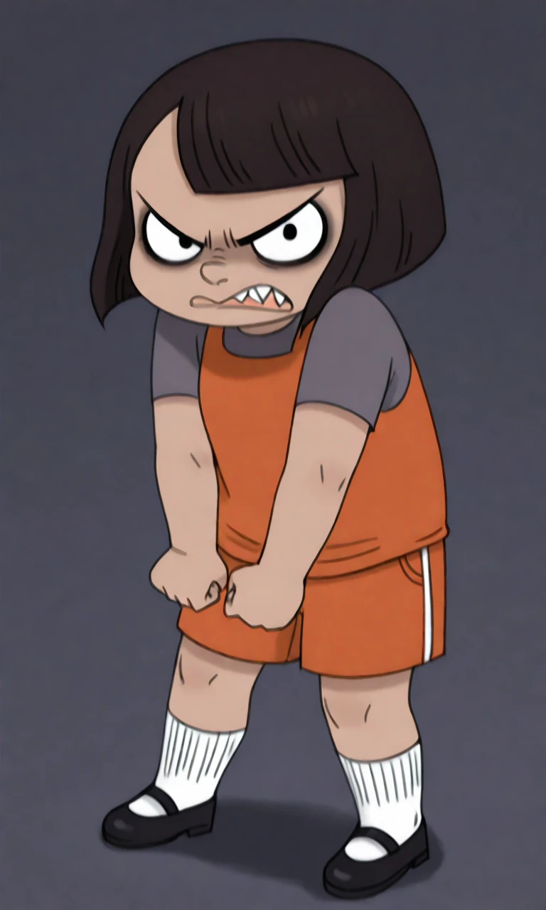 MalSB, 1girl, dark brown bobcut, black eyes, light brown skin