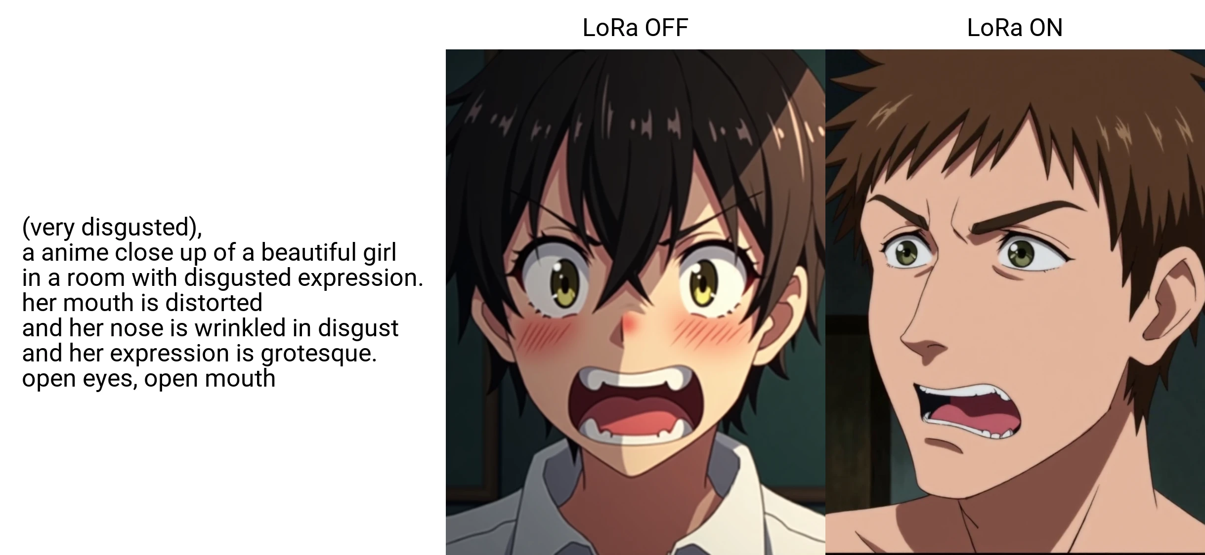 You can also mark it by adding "very" to the expression in brackets, and with additional tags to add after the caption, such as "open mouth", "scream", "smile", "laugh", "terrified" etc.