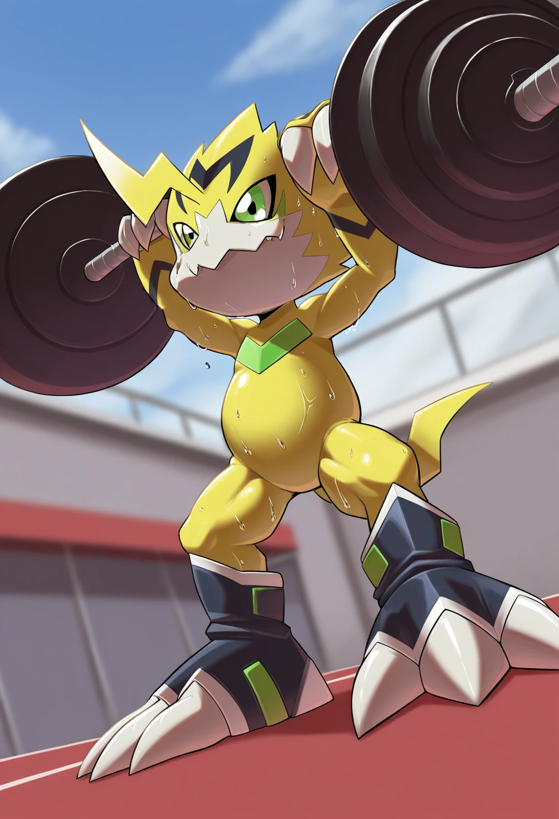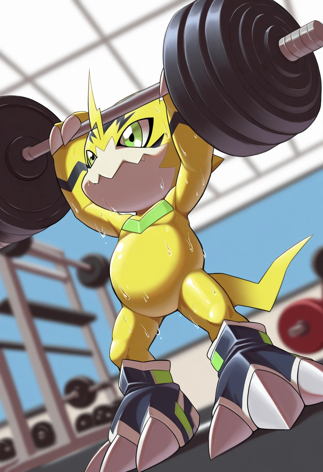 Bulkmon: digimon (creature), bu1km0n, yellow body, muscular