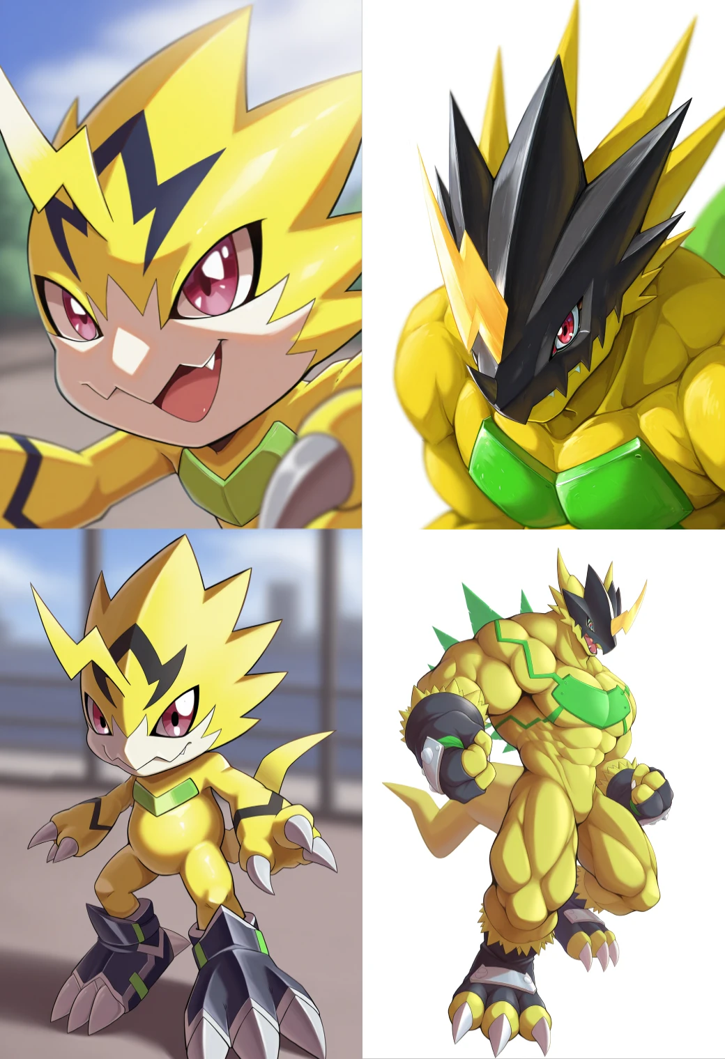The strapping stud hottie Digimon Bulkmon and their previous form Pulsemon