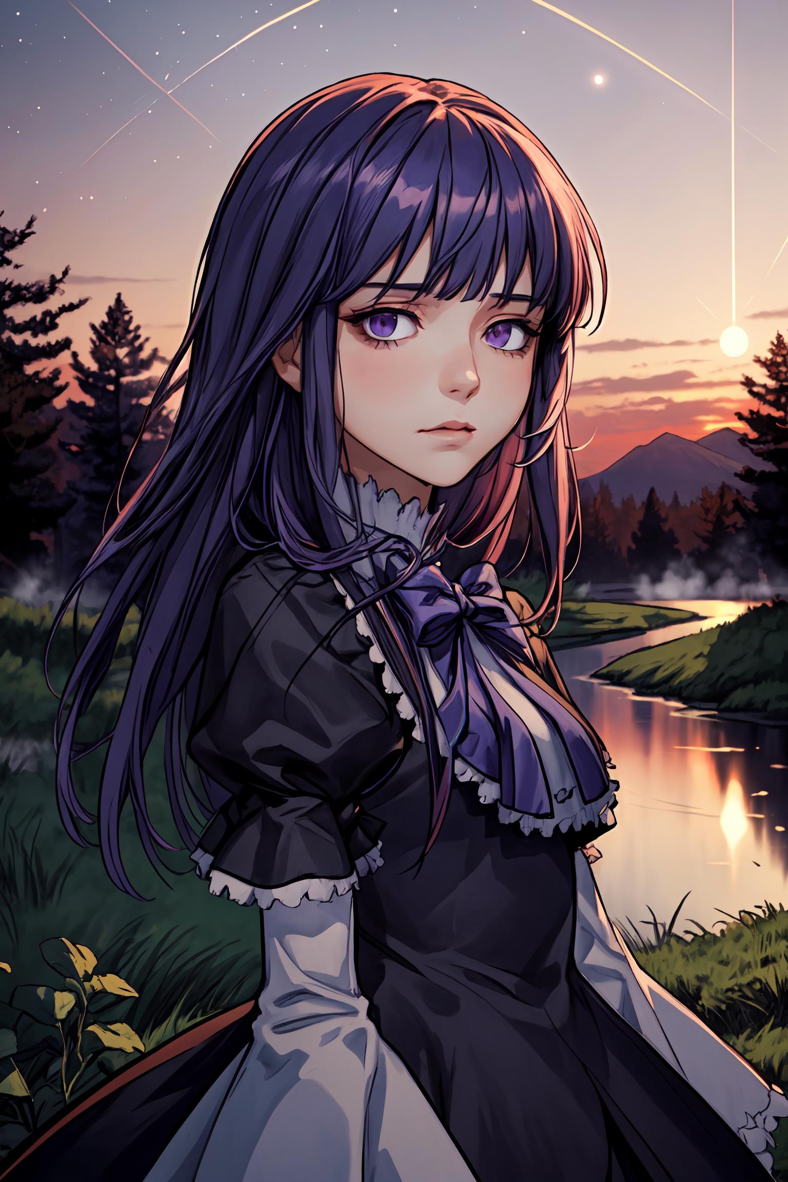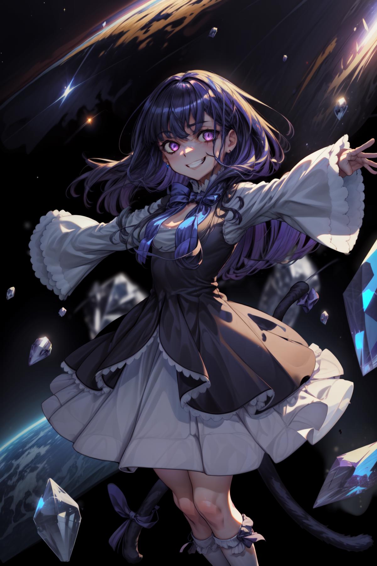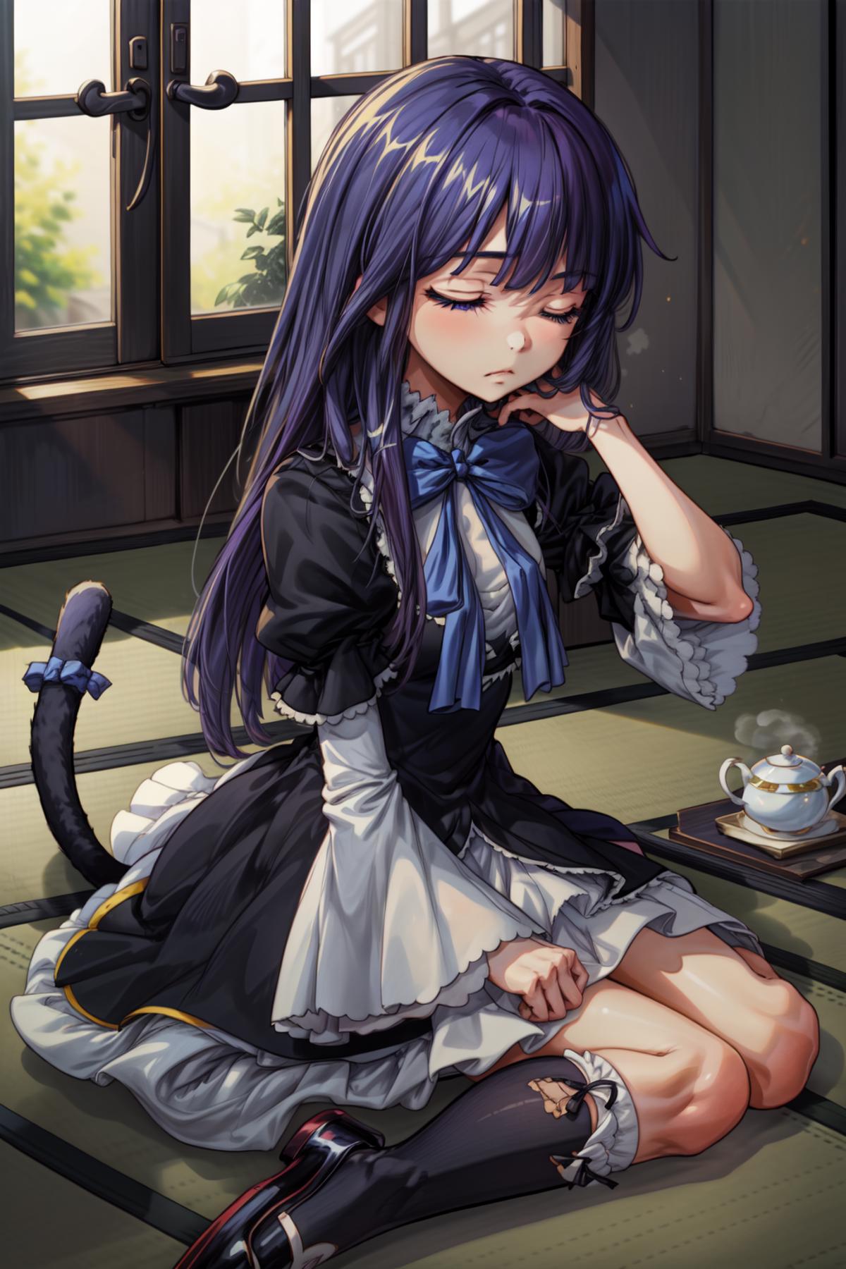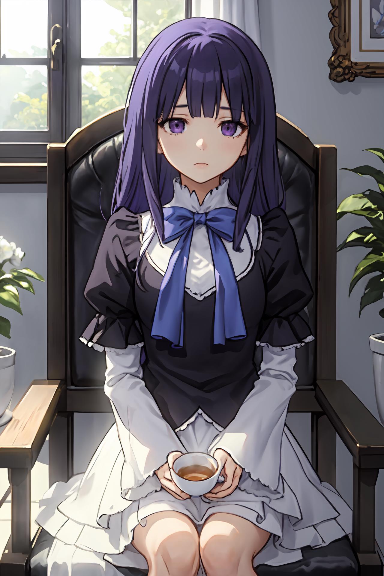 Prompt activator: frederica bernkastelMajor prompt words: purple hair, cat tail, tail bowMinor prompt words: purple eyes*, tail ornament* Witch outfit: dress, bowtie*, mary janes*, socks**If the main trigger word does not work properly