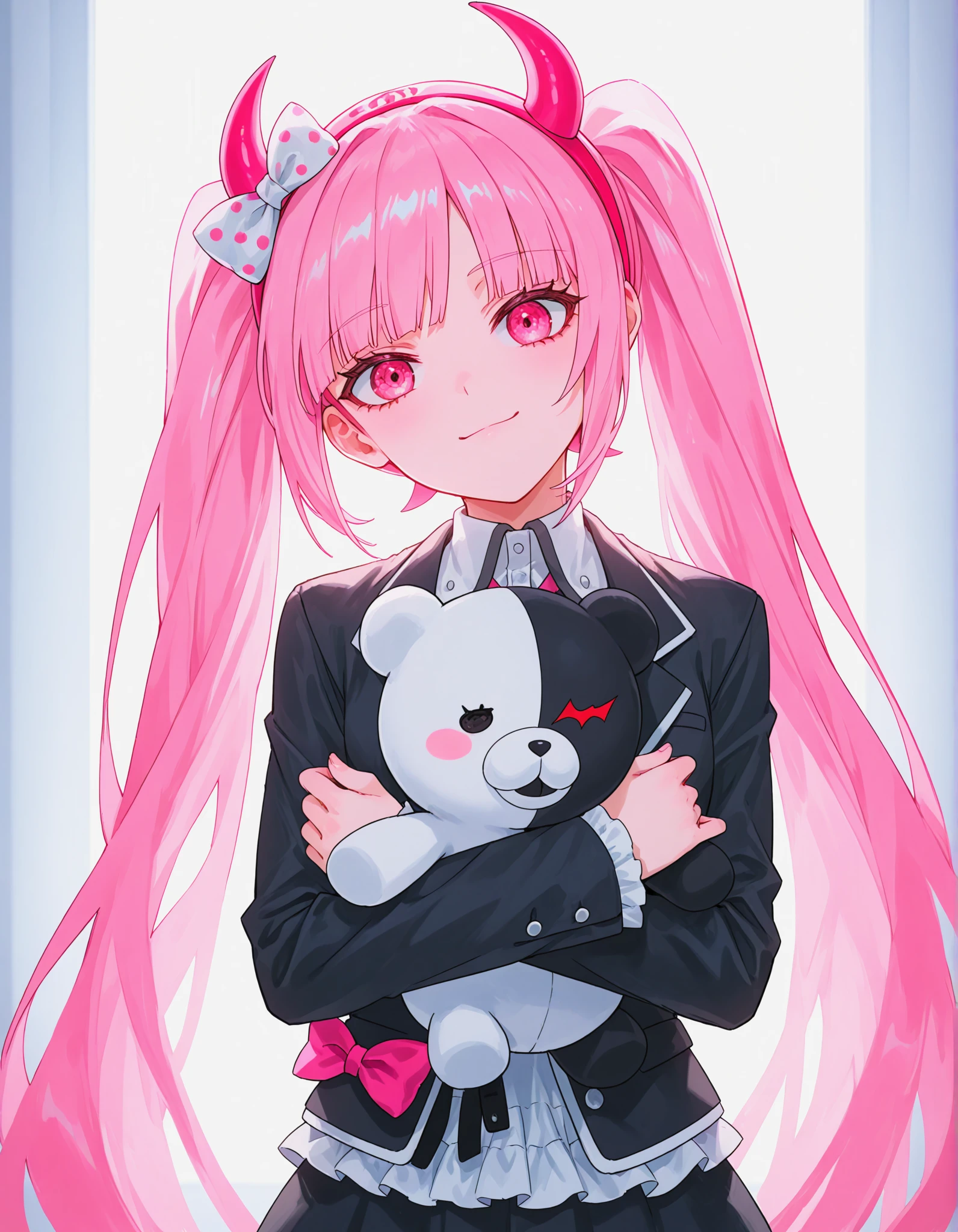 utsugi kotoko, light pink hair, light pink eyes, twintails, long hair,