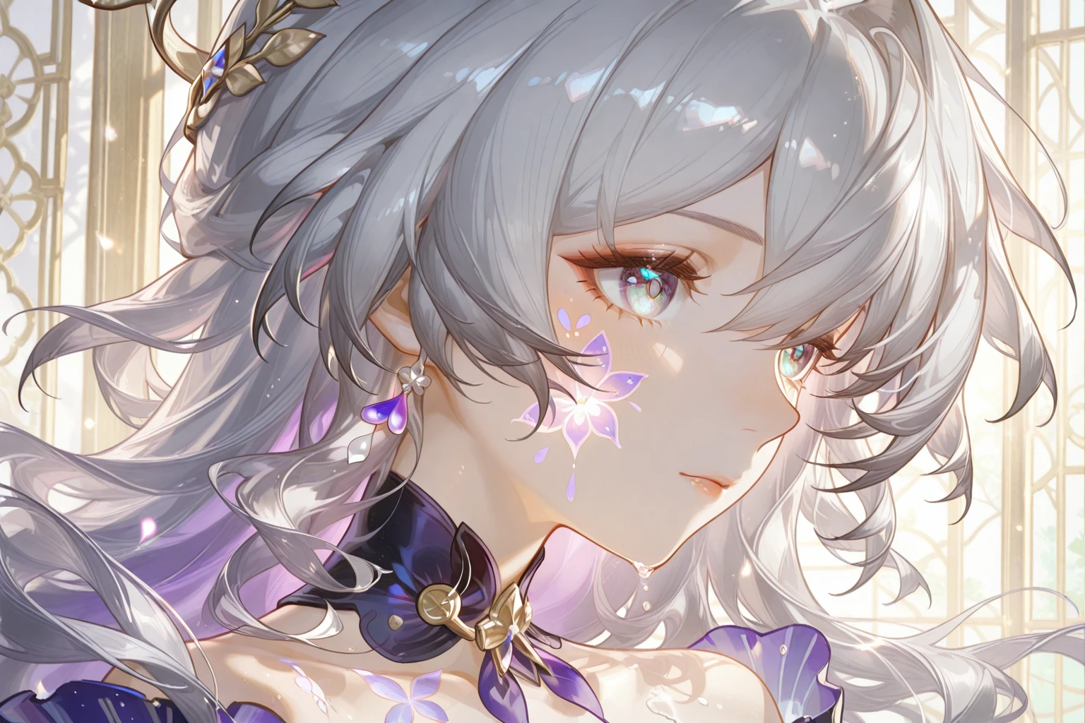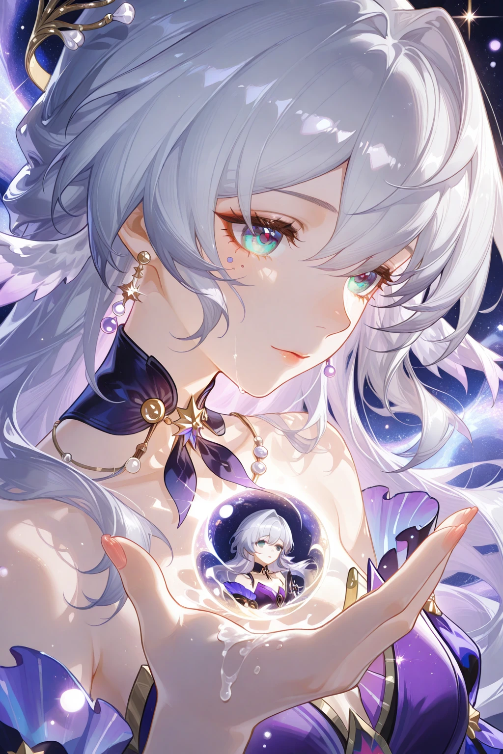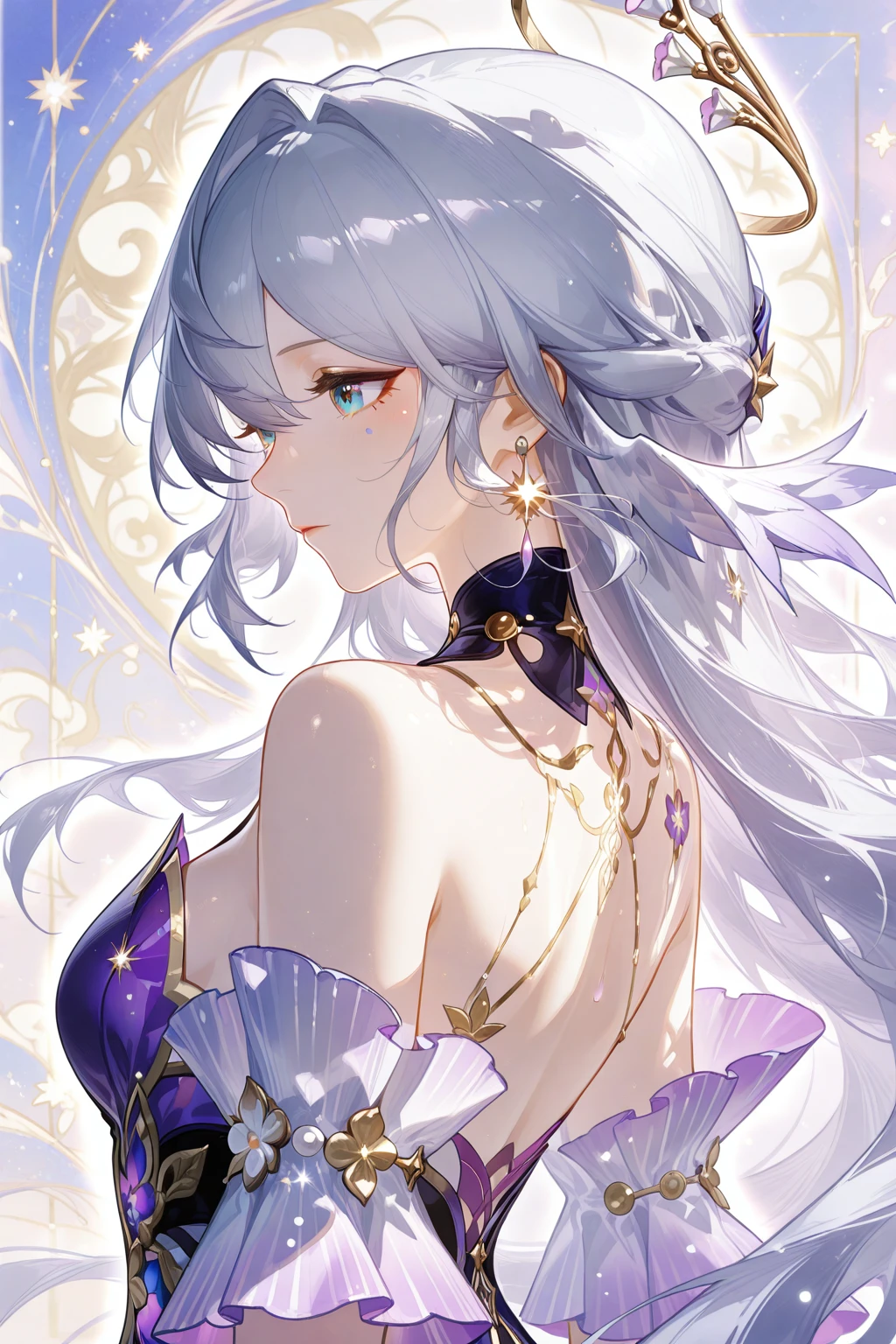 First half of the art style trigger words:masterpiece,best quality,ultra-detailed,official art,anime illustration,dynamic composition,expressive painterly strokes,fluid linework,soft painterly style,translucent rendering,ornate character design,intricate costume details,mythical and dreamlike atmosphere,sense of movement and fluidity,glossy and iridescent textures,