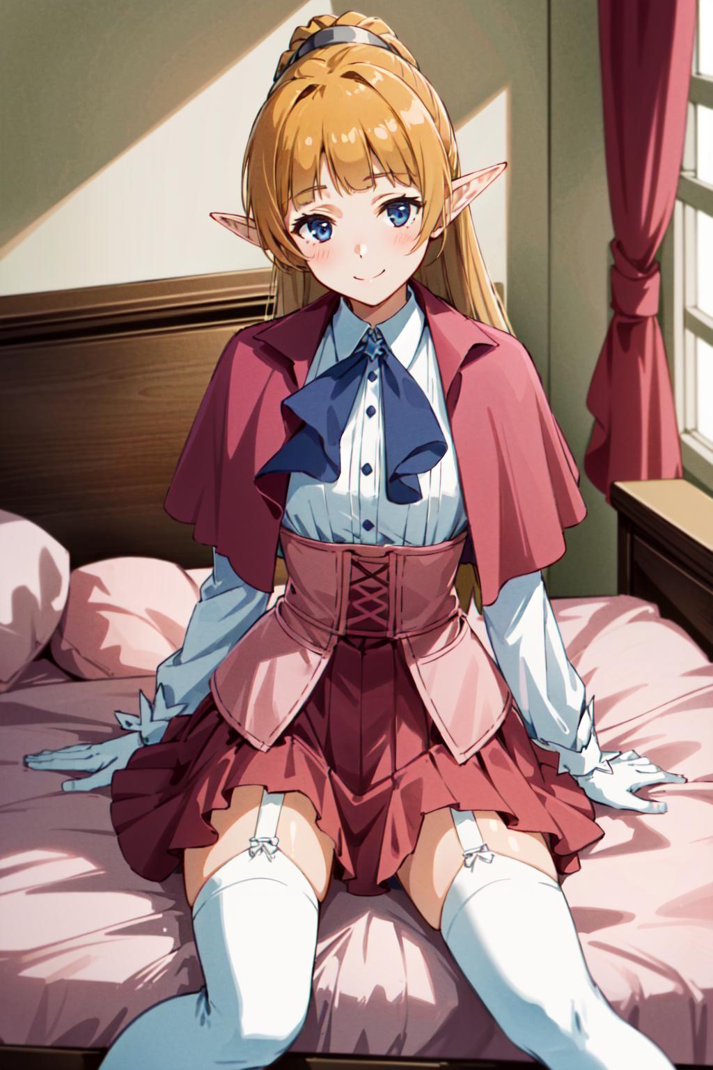pink capelet,skirt,thighhighs,white thighhighs,garter straps,capelet,gloves,zettai ryouiki,pink skirtDescription