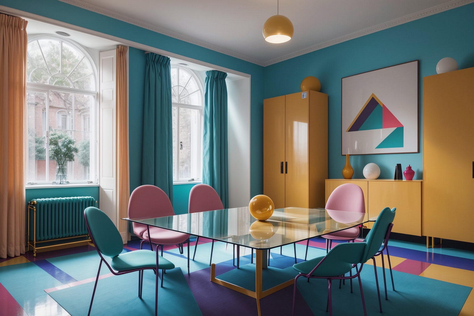 Trained on about 80, 1980s Memphis interior design, clothing, patterns, architecture.