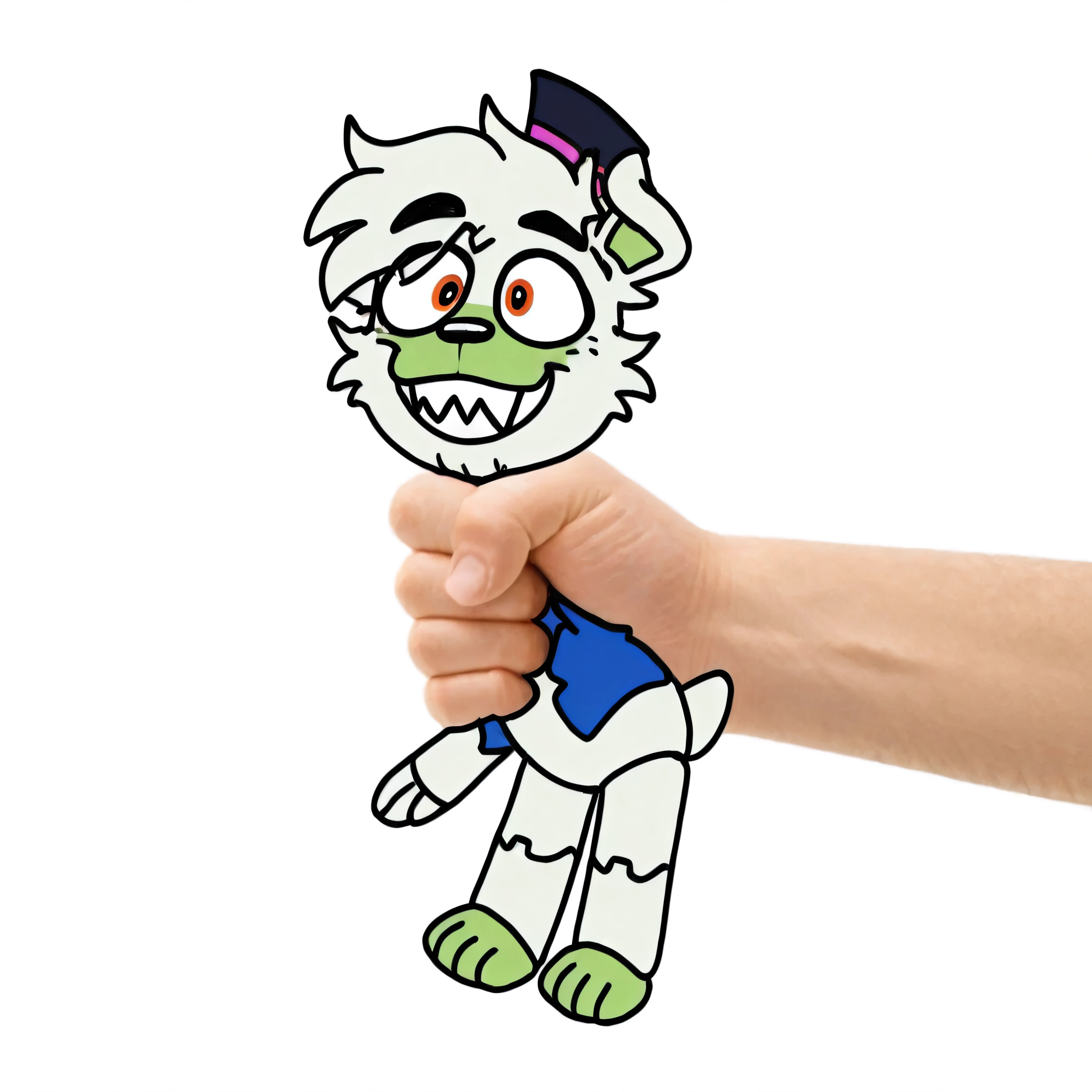 mikus-concept, hand, small character, being held, holding, white background, simple background