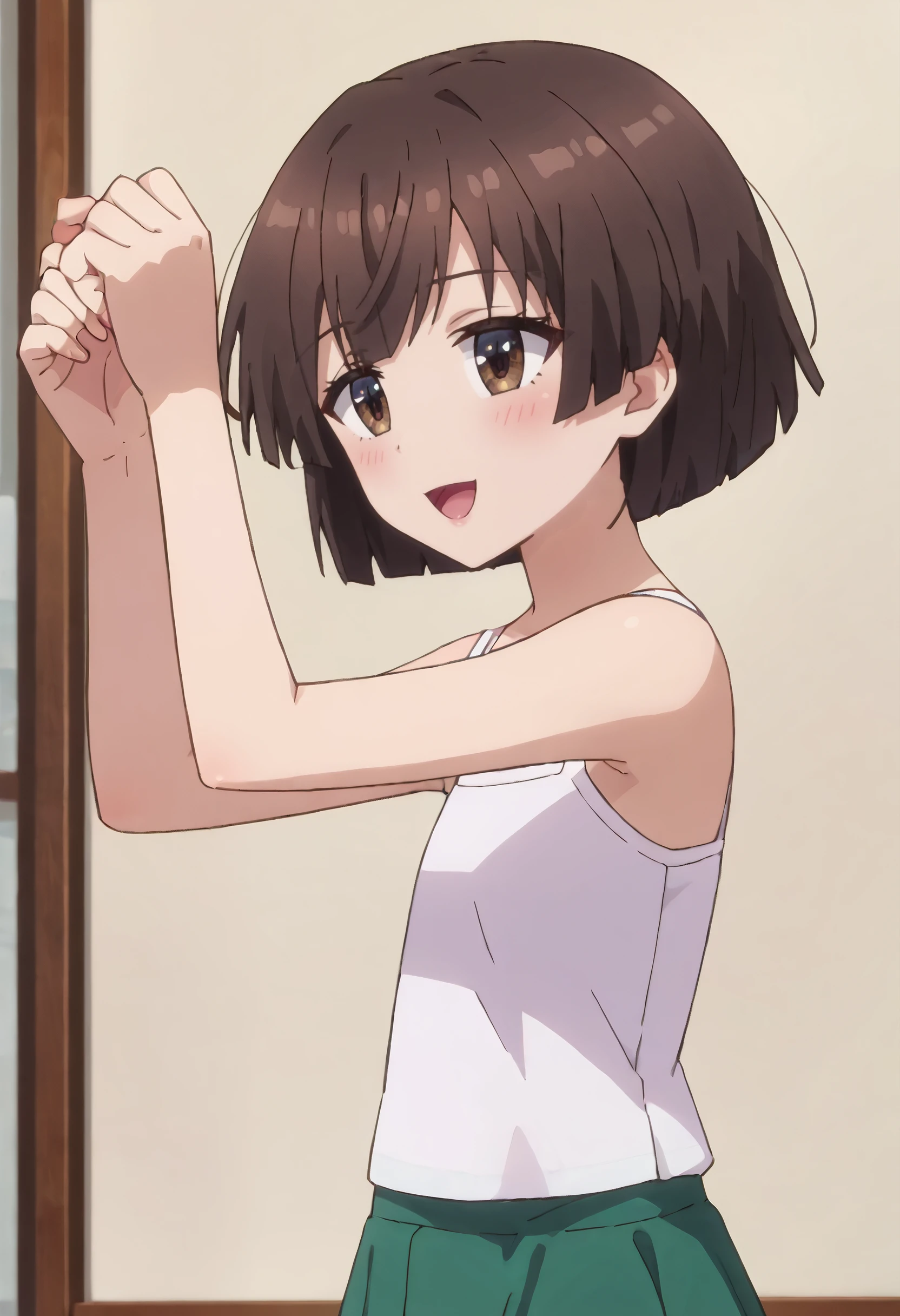 MiuTanktop, tank top, white tank top, shirt, casual, camisole, white camisole, spaghetti strap, blunt ends, white shirt, skirt, green skirt,