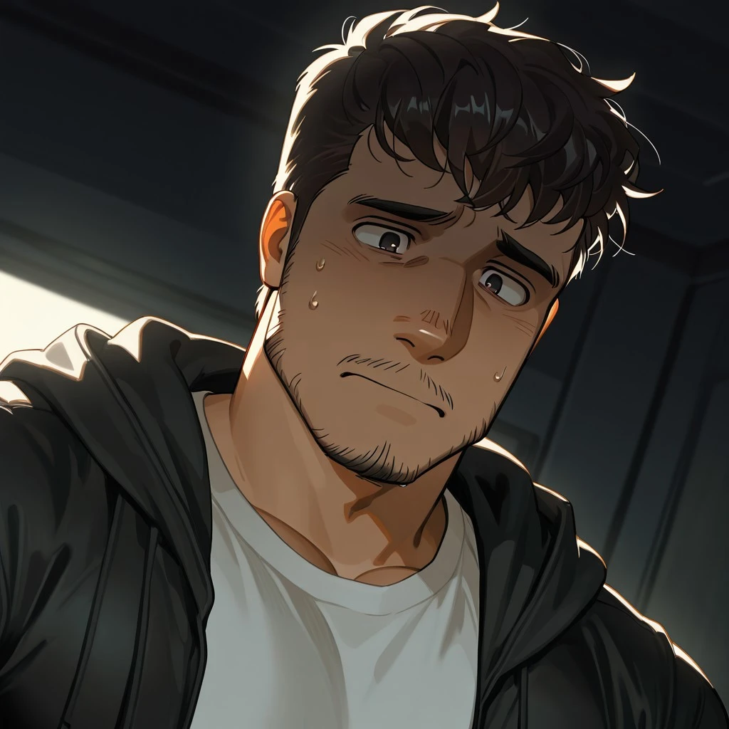 MikeS, dark hair, messy hair, short hair, dark eyes, facial hair, white shirt, black jacket, male