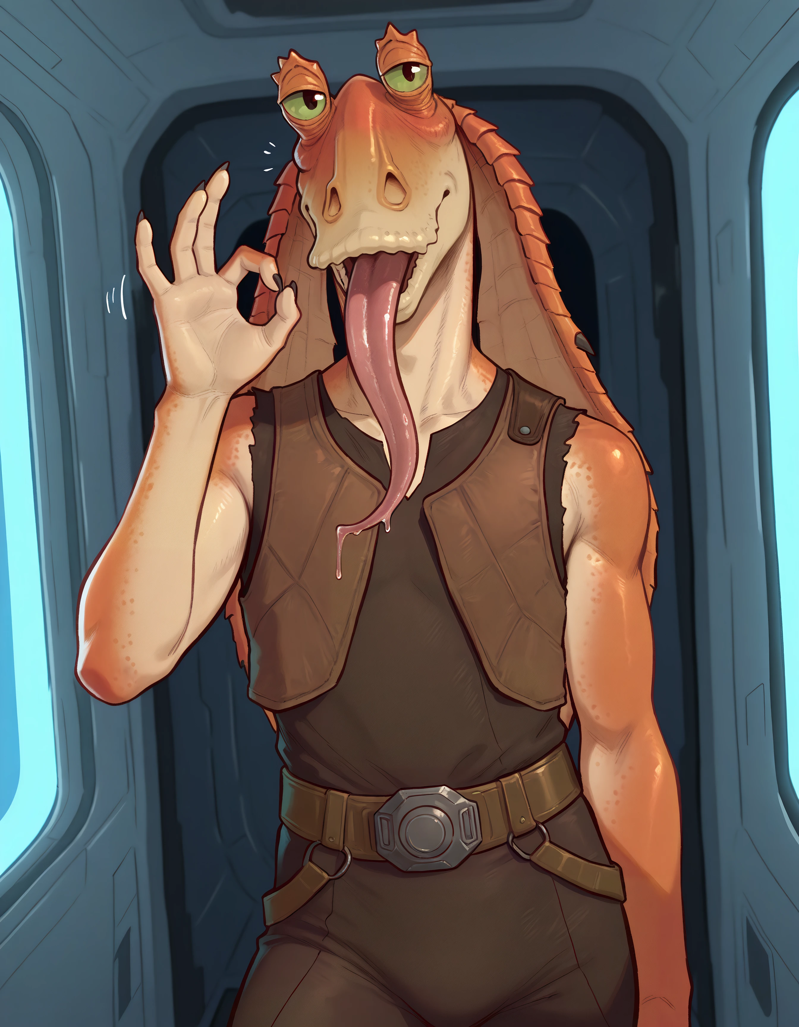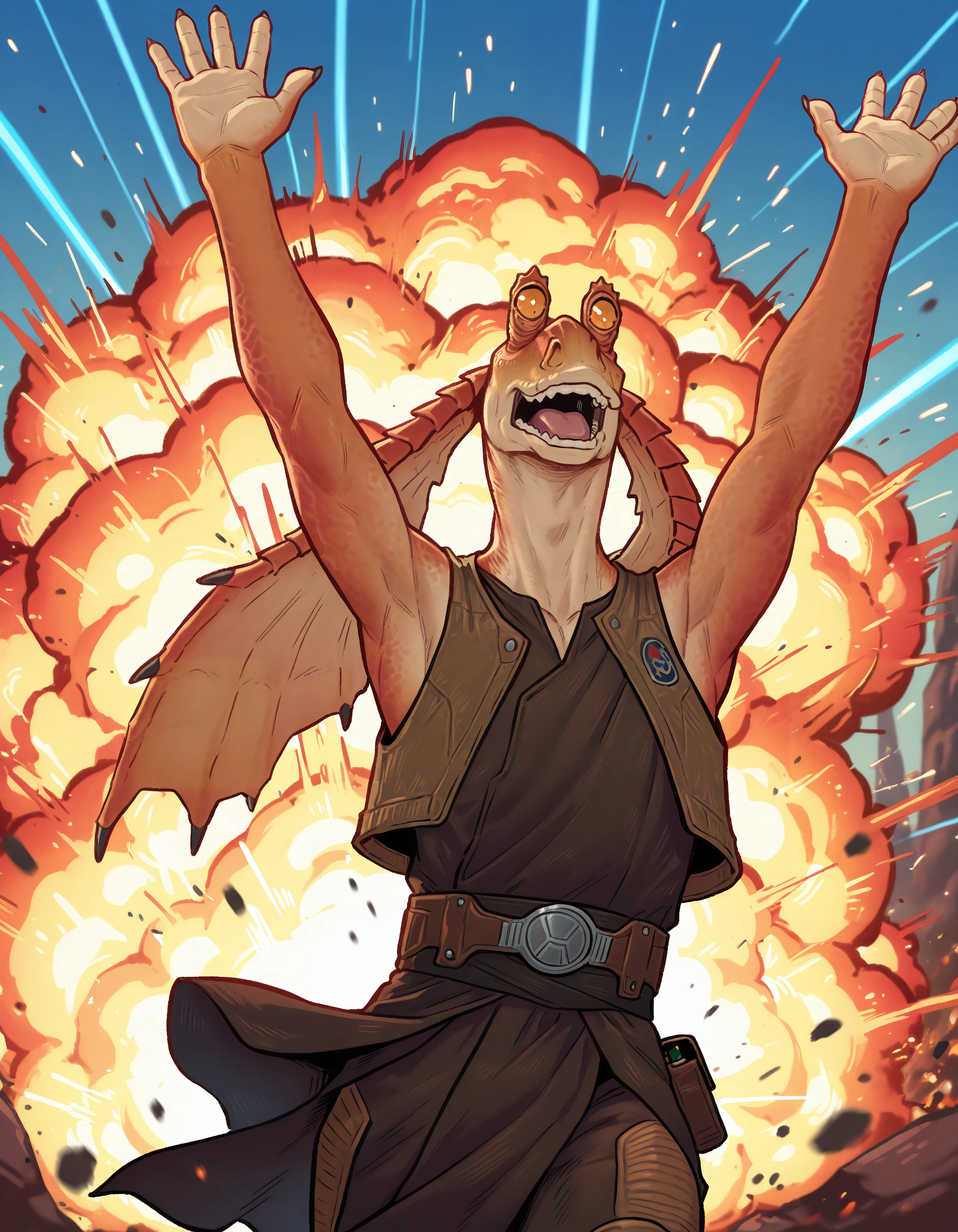 V2: Incorporates movie screenshots, 3d model shots and nsfw art. A bit overtrained on Banana Da Boi's art but otherwise easier to use. Includes other gungans in the training data.