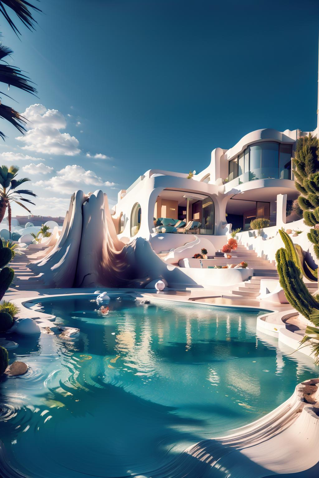 该LORA意在描绘一个白色建筑物,显示真实建筑场景。