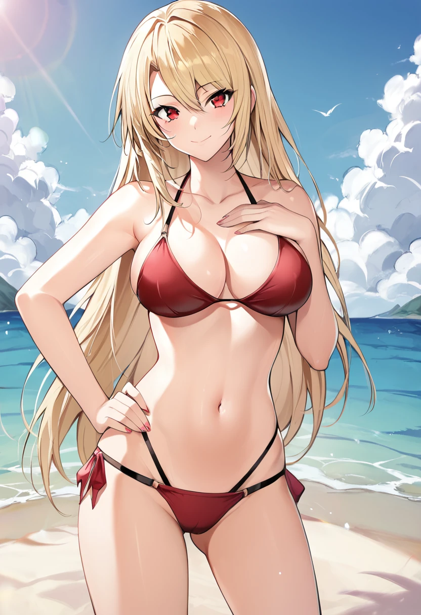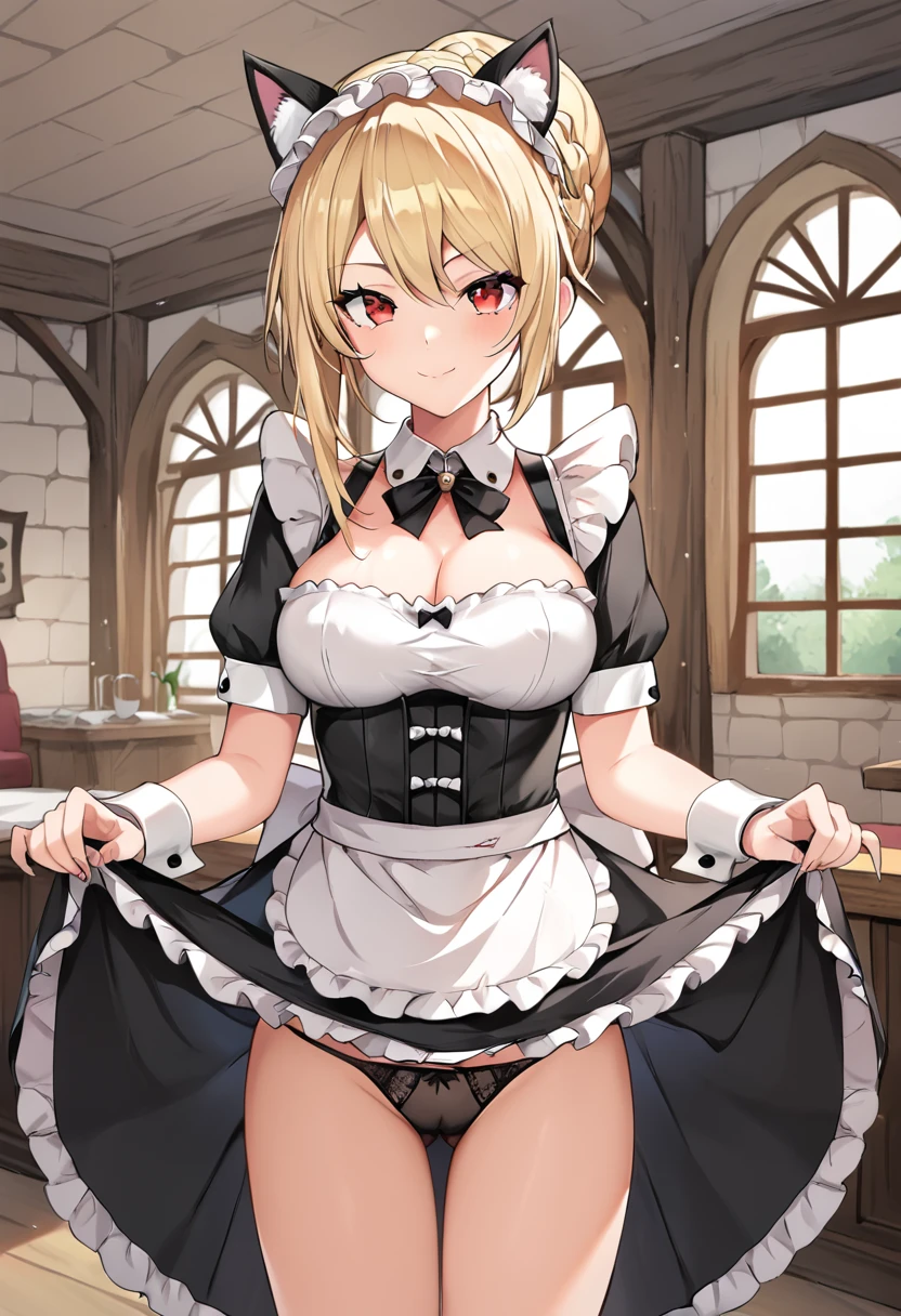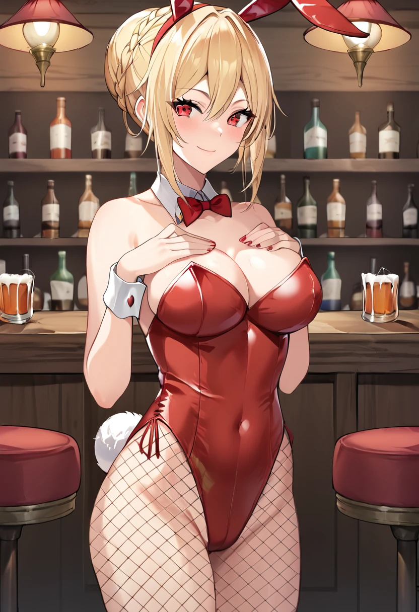 Trigger words: angelica_redgrave, blonde hair, red eyes, bun with braided base, braid,