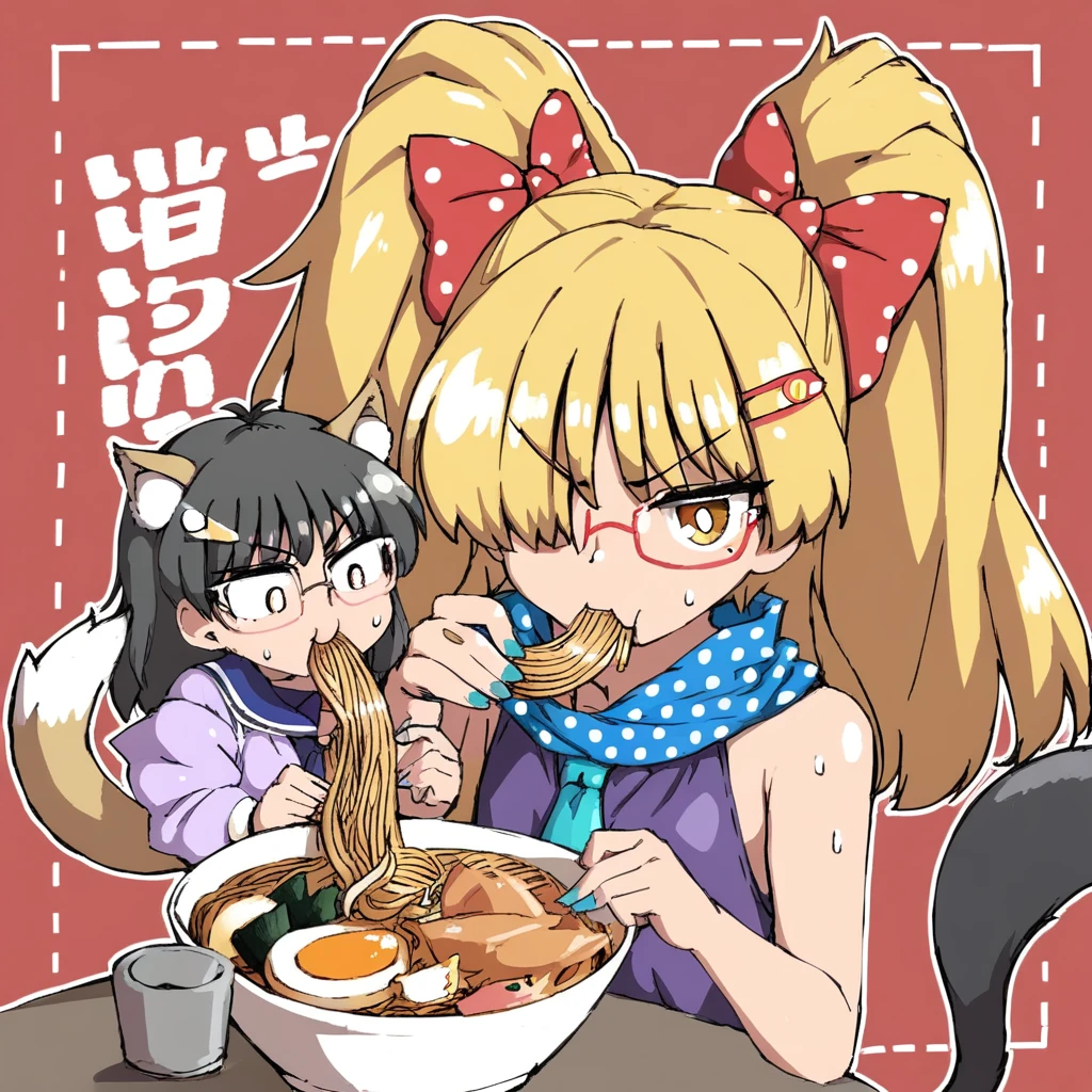 AI Drawing Anime Characters Eating Ramen (Meme) [Pony] - AI Drawing Anime Characters Eating Ramen (Meme)