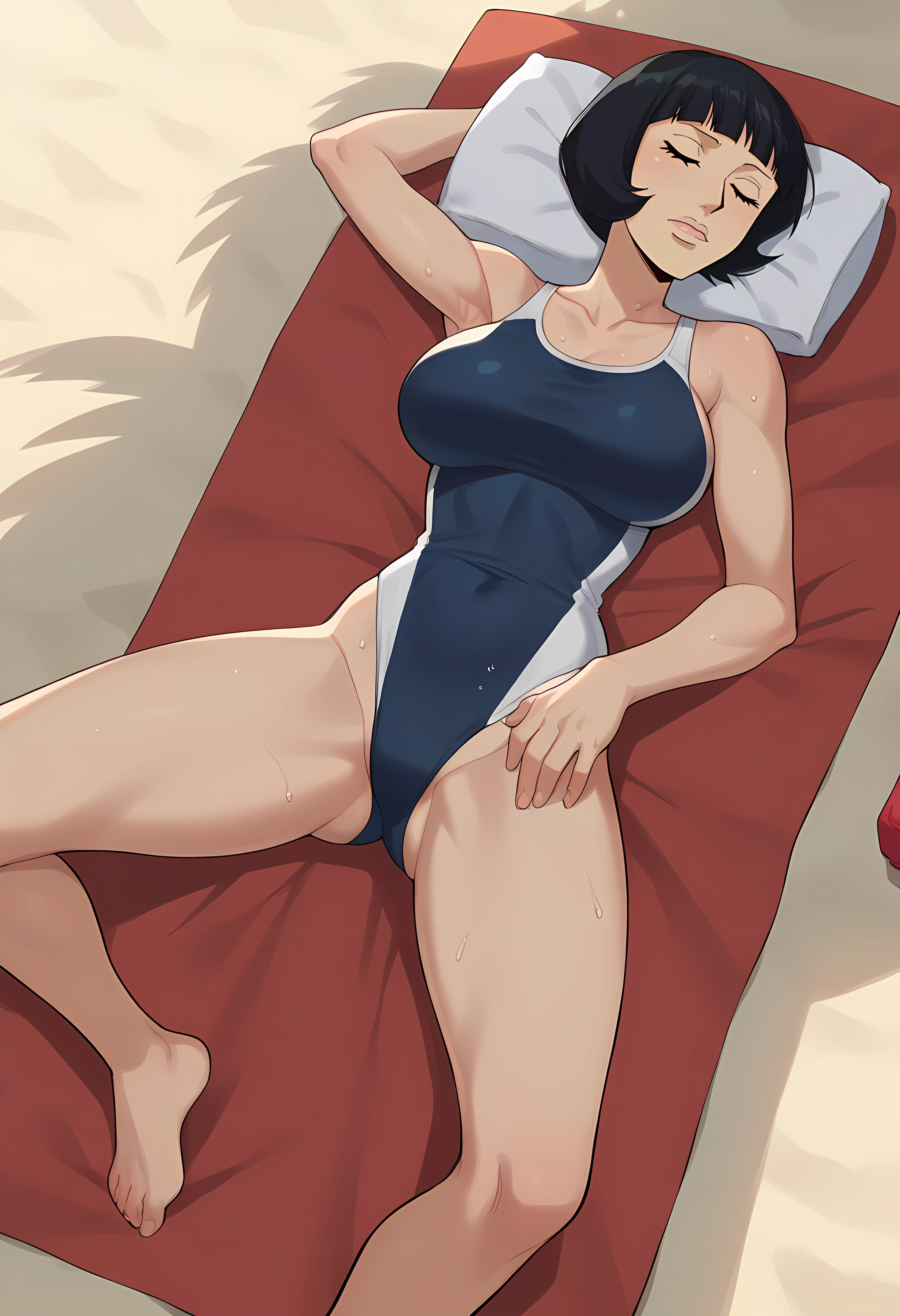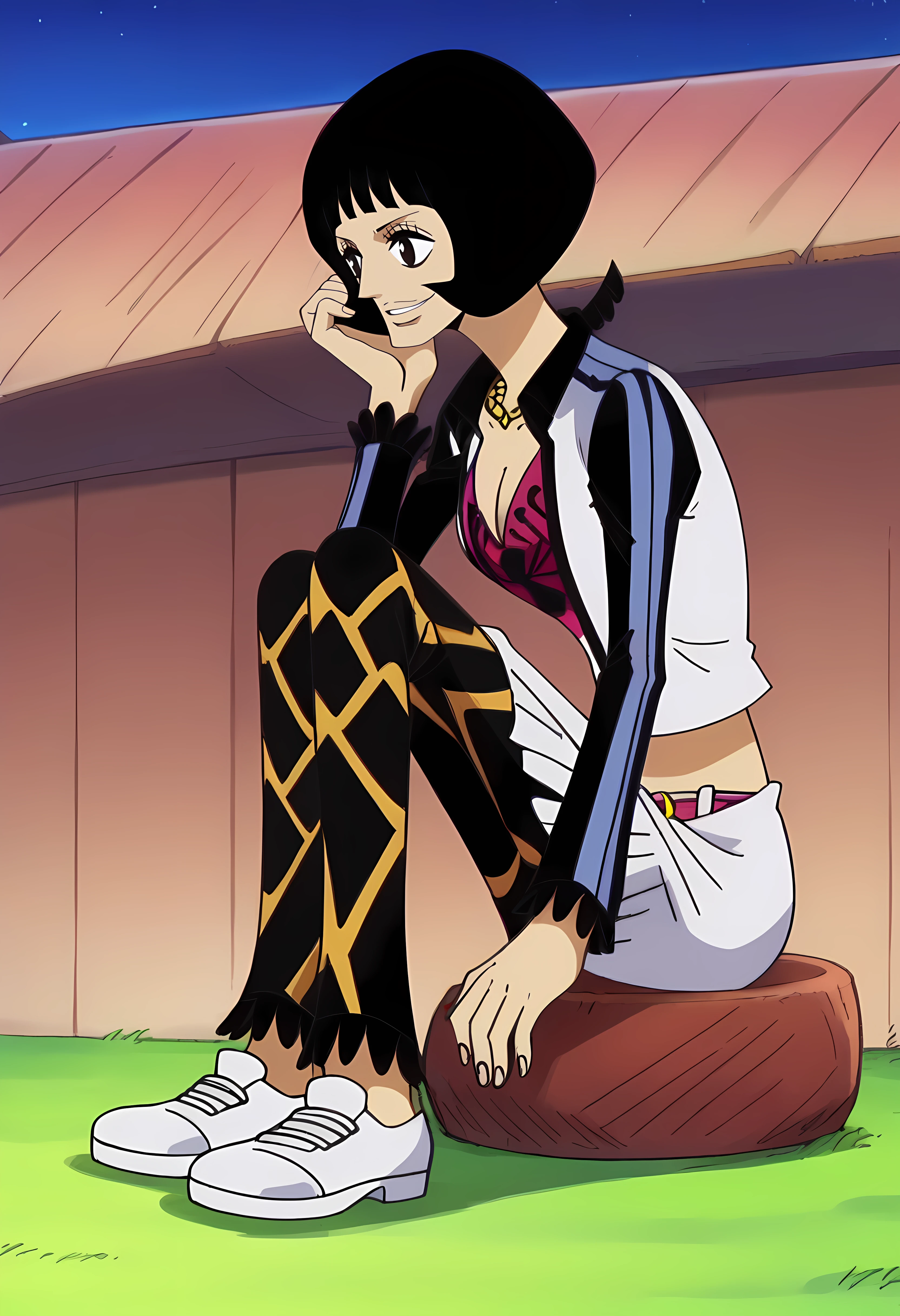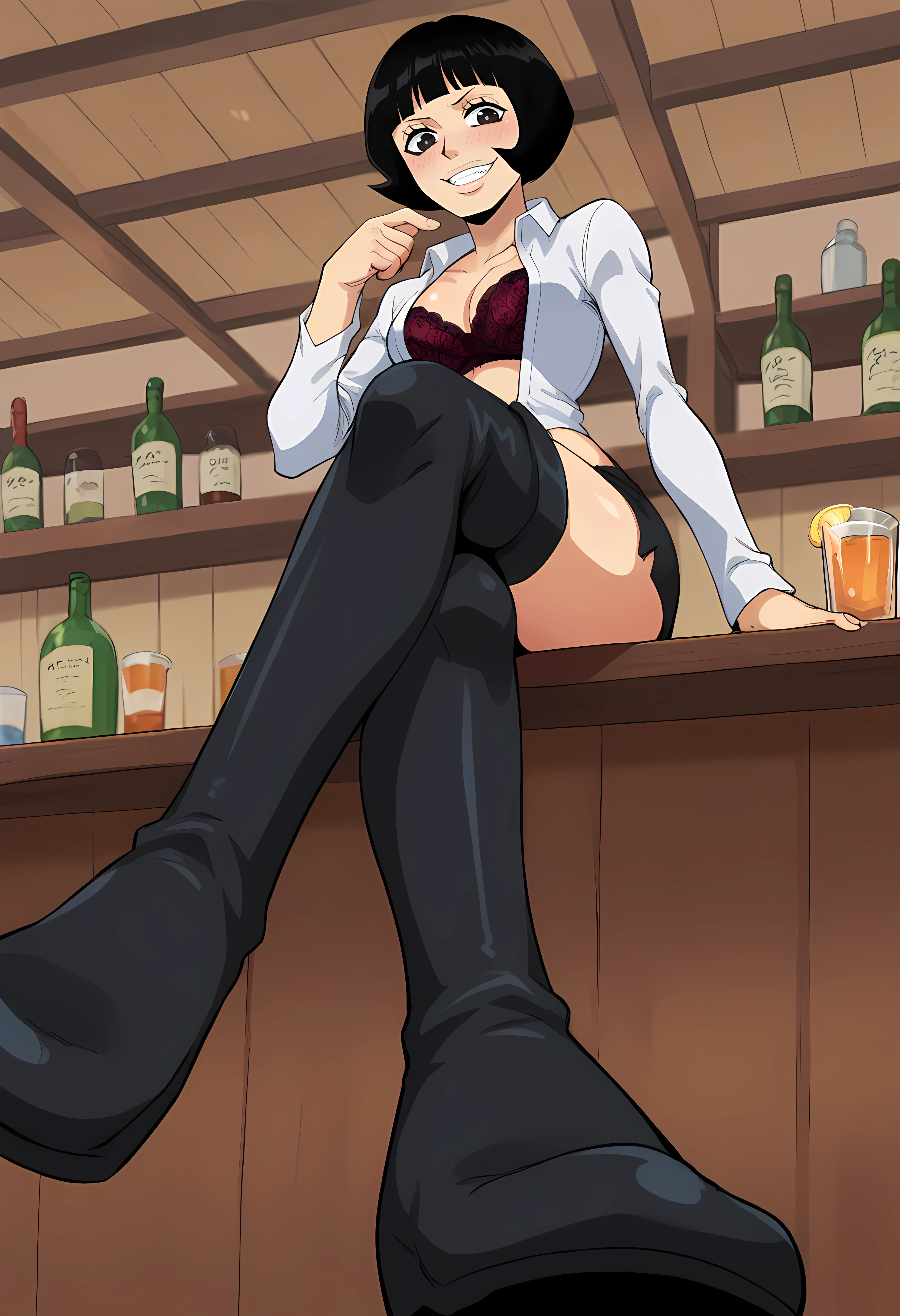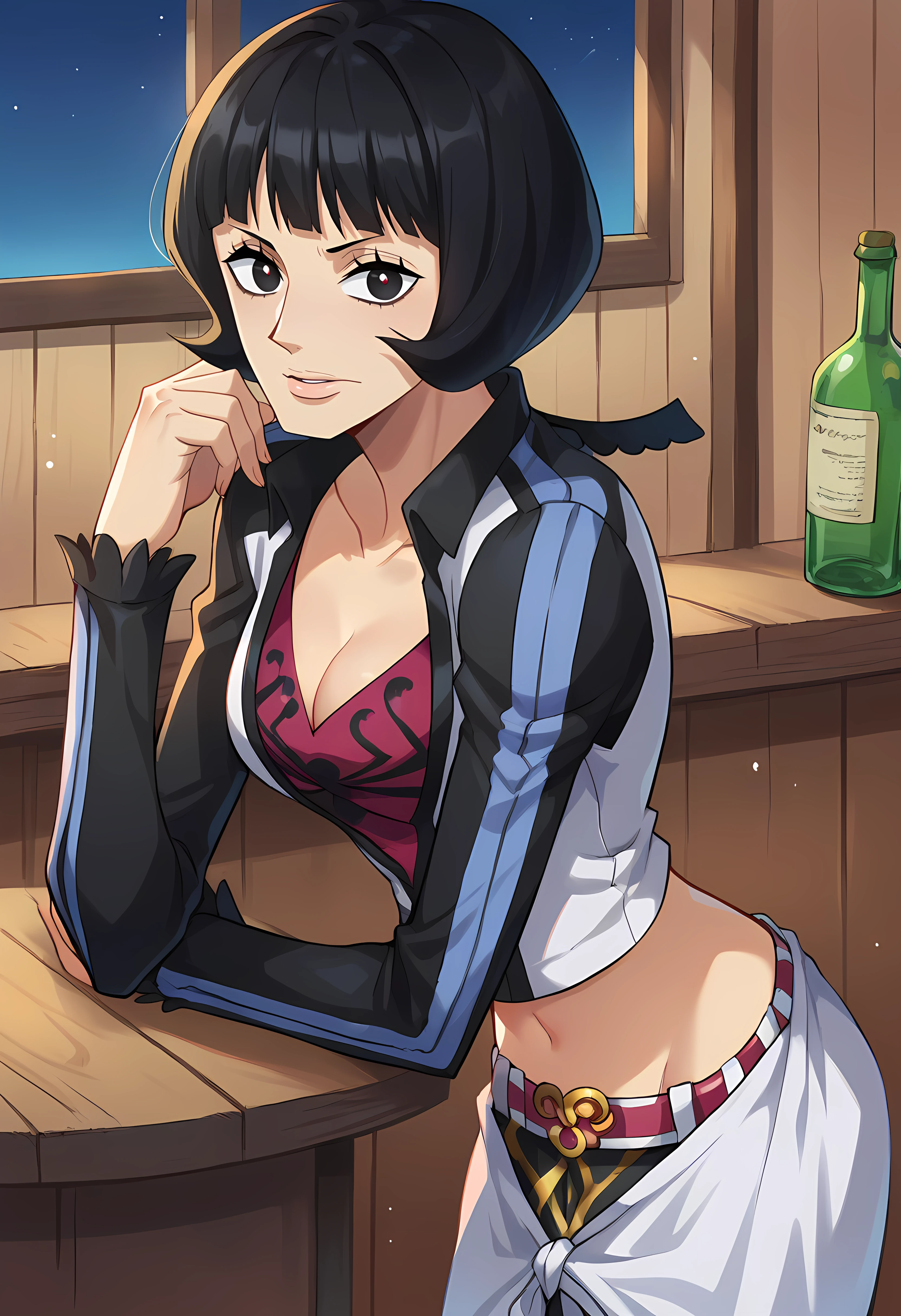 Sh4kky, 1girl, black hair, black eyes, bob cutFor her outfit: