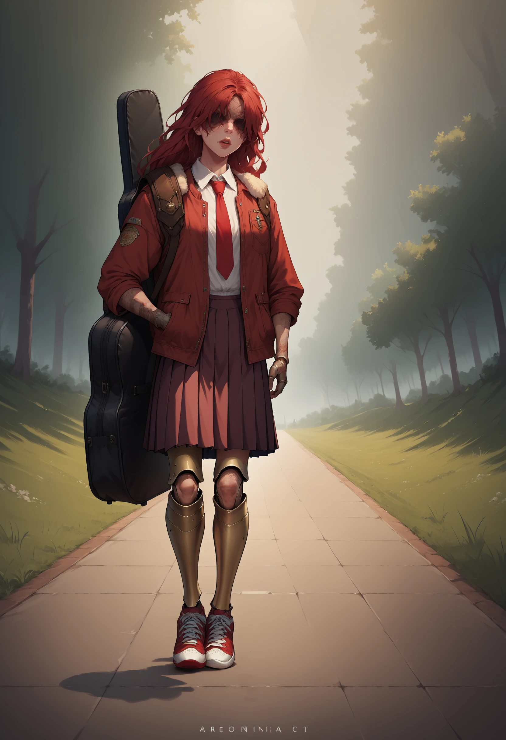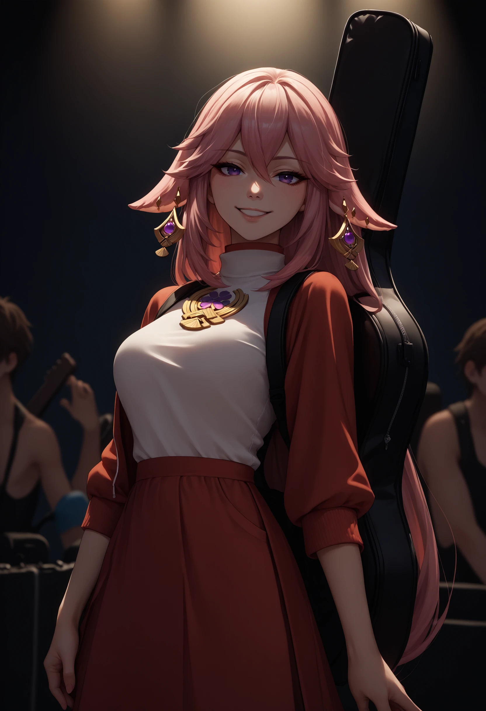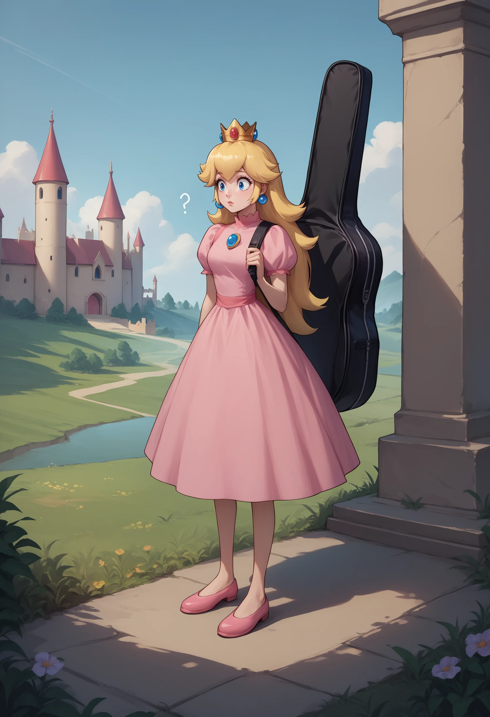 instrument on back, instrument case, guitar case