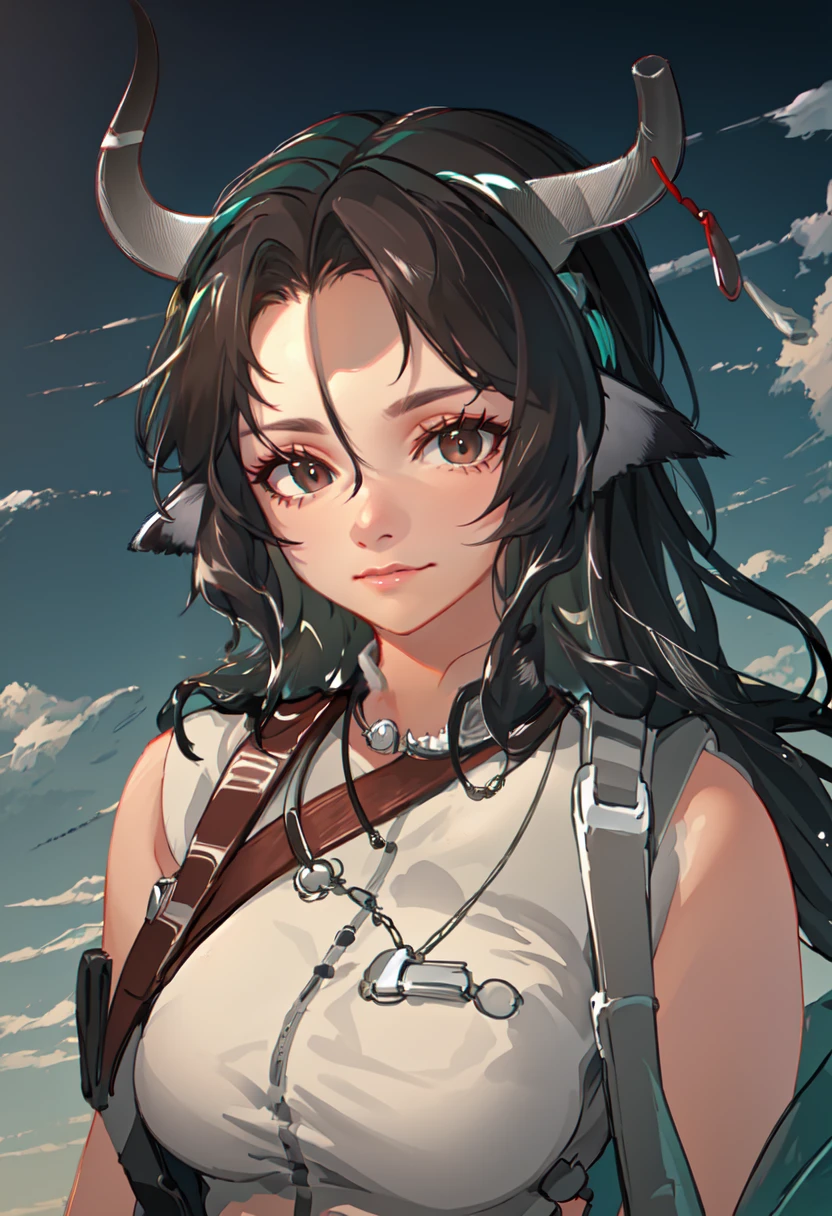 - The pruned character tags are breasts, horns, cow ears, cow horns, animal ears, cow girl, long hair, black hair, brown hair, large breasts, braid, brown eyes, hair between eyes. You can add them into prompts when core features (e.g. hair color) of character is not so stable.