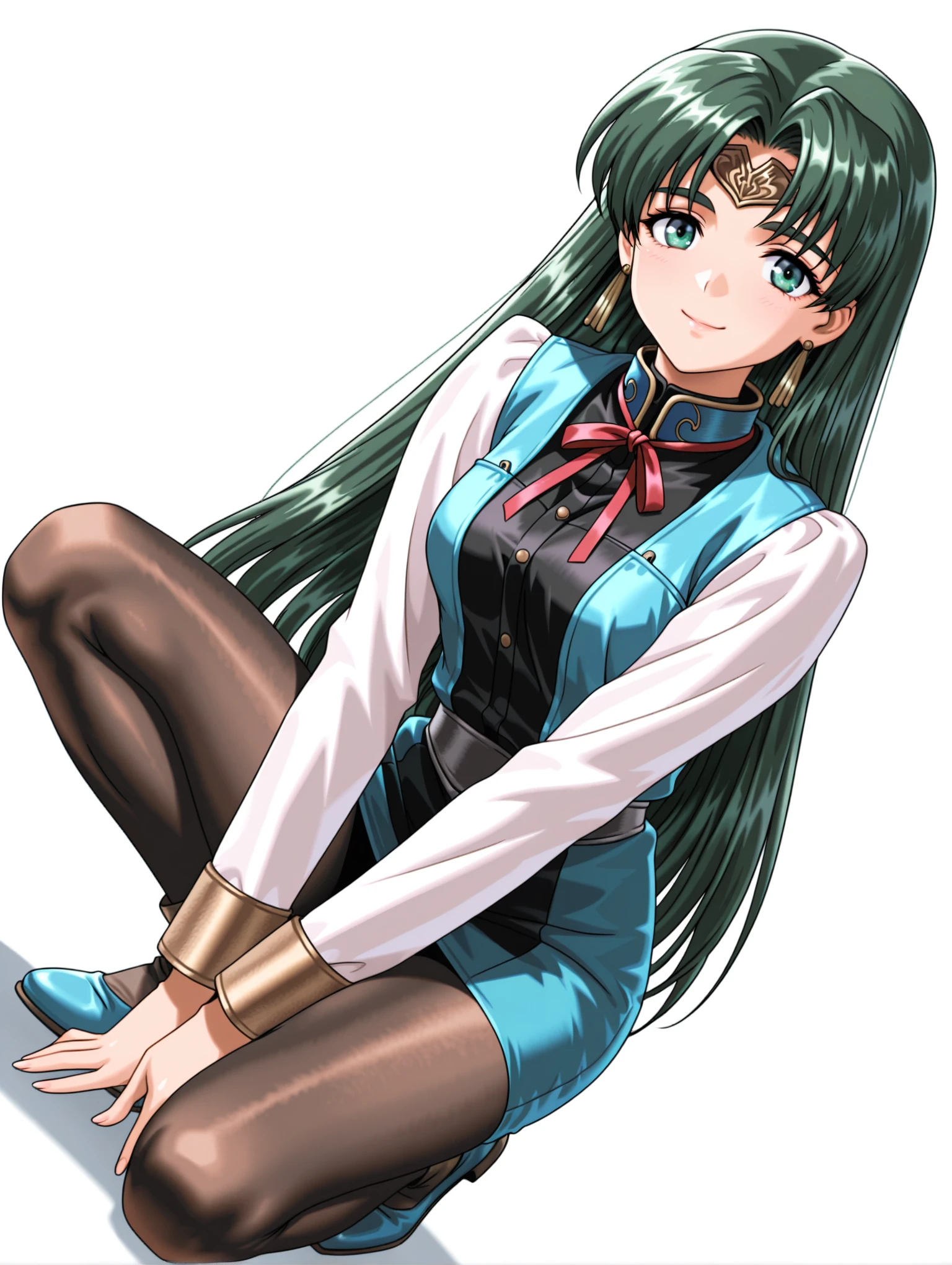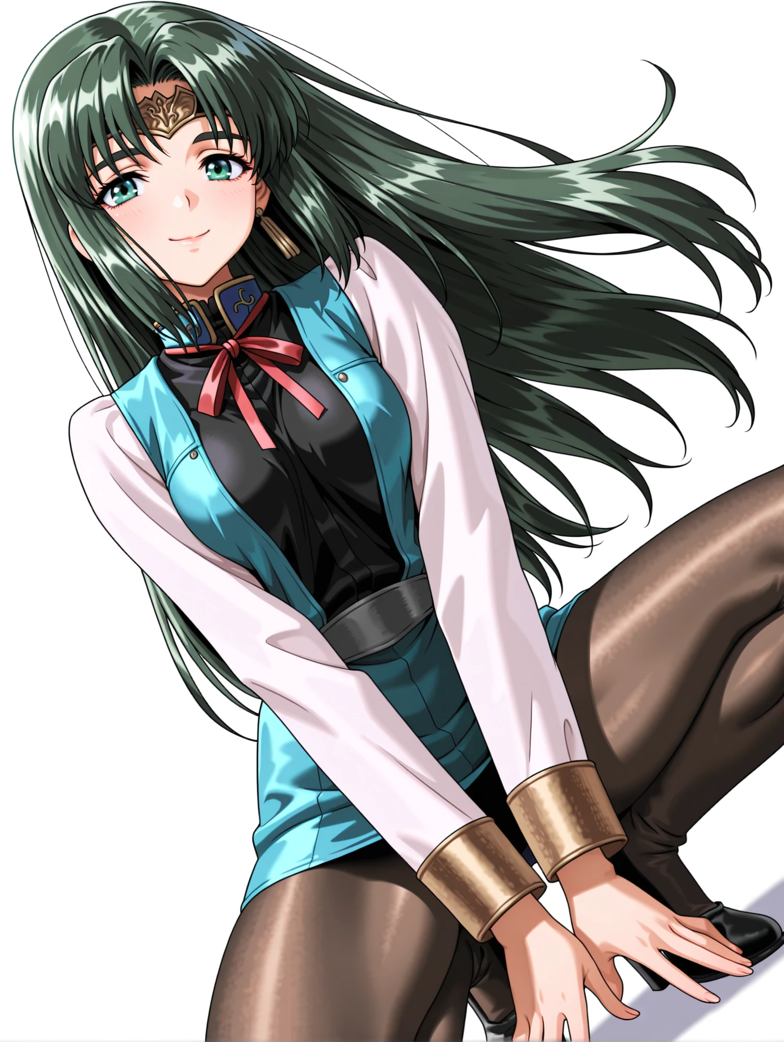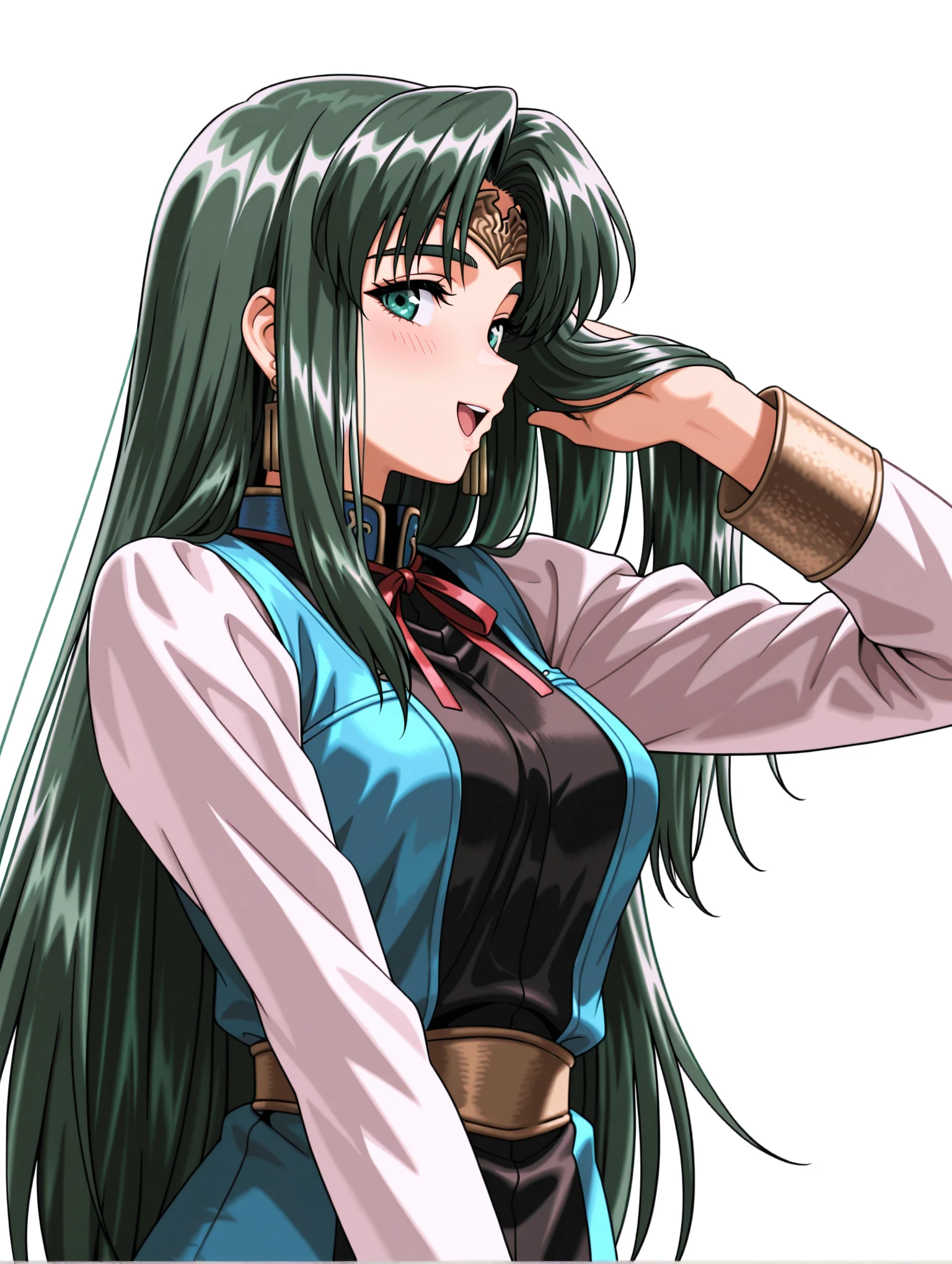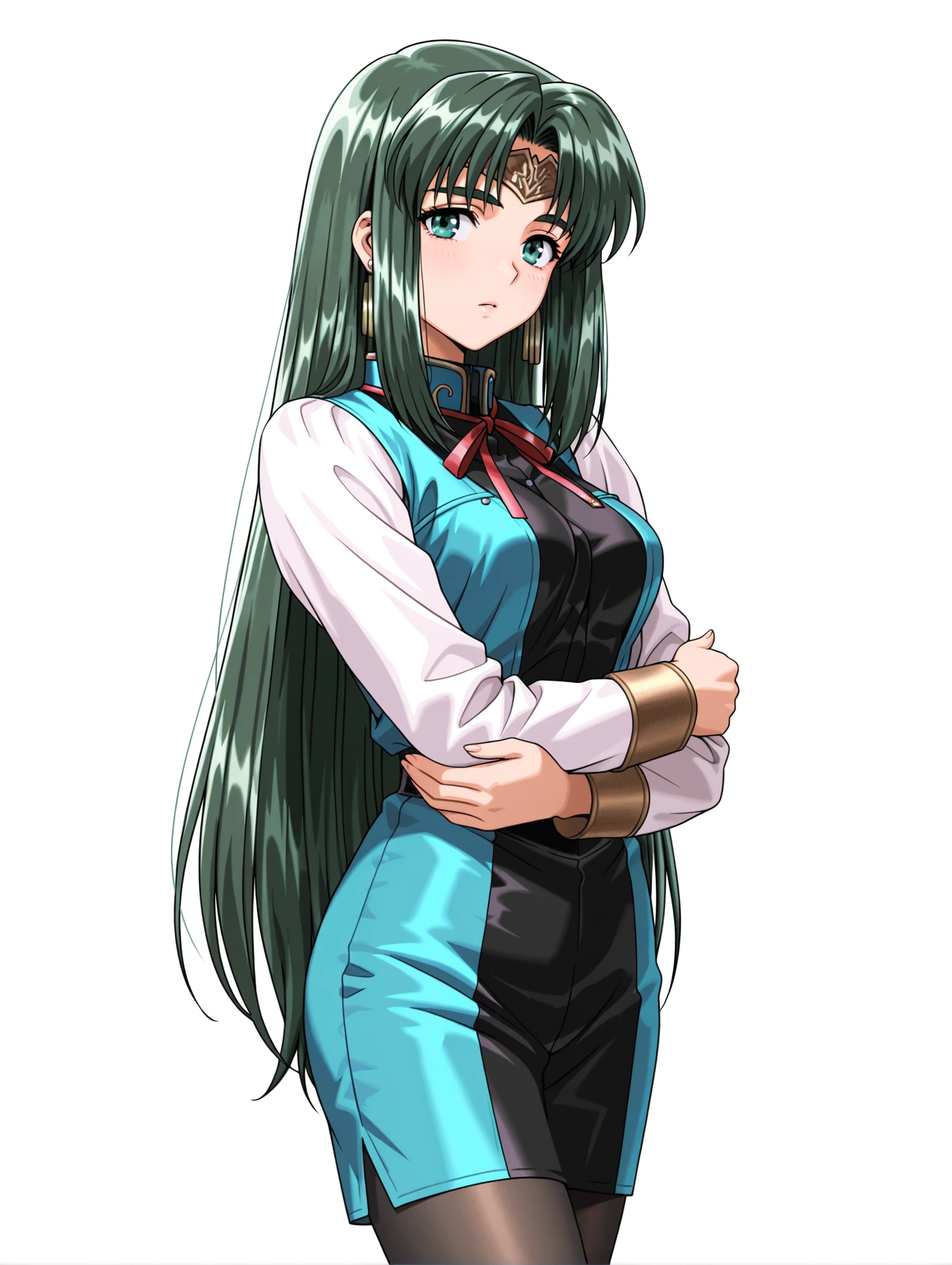 maris_a,green hair,green eyes,very long hair,circlet,jewelry,