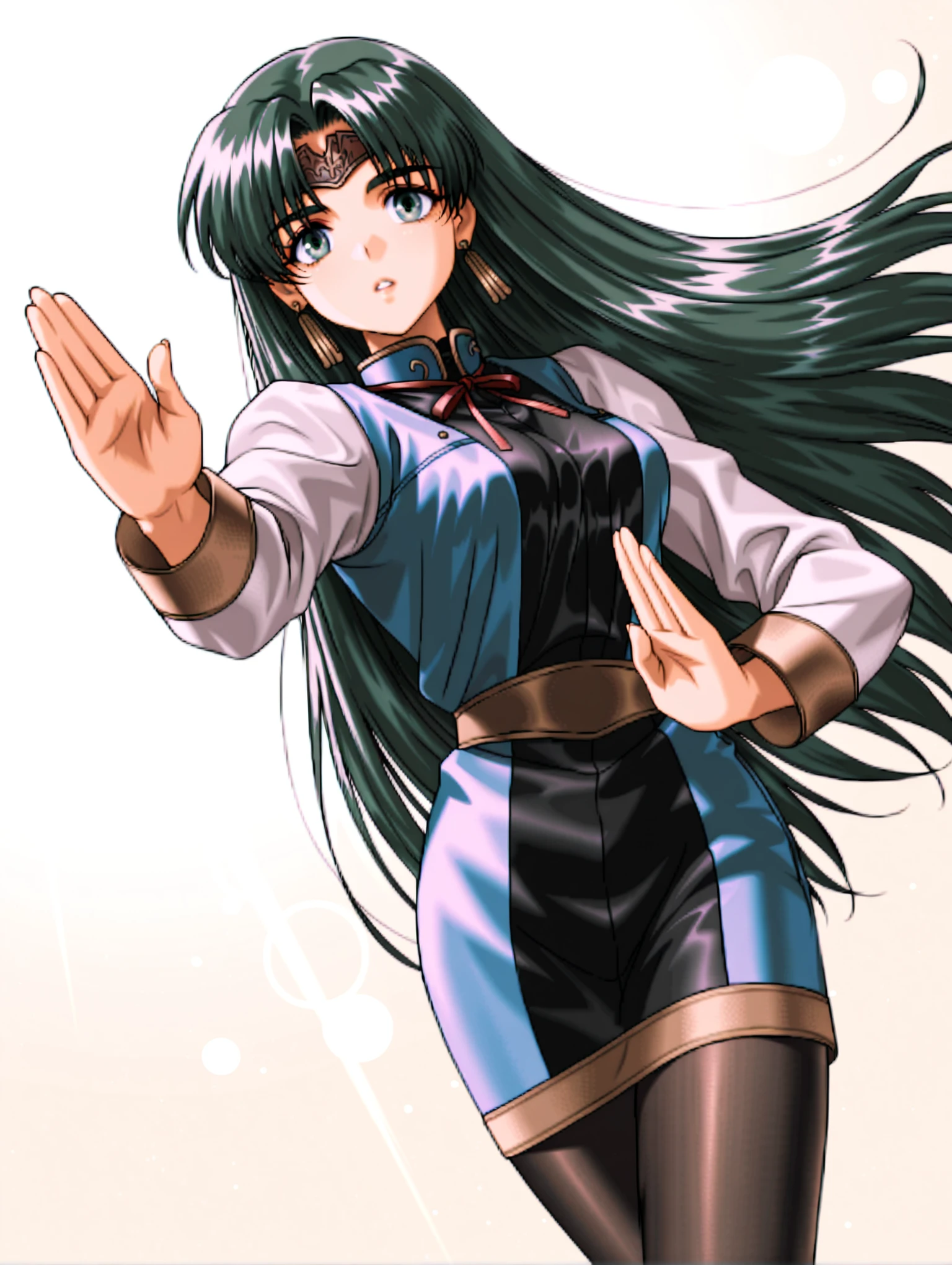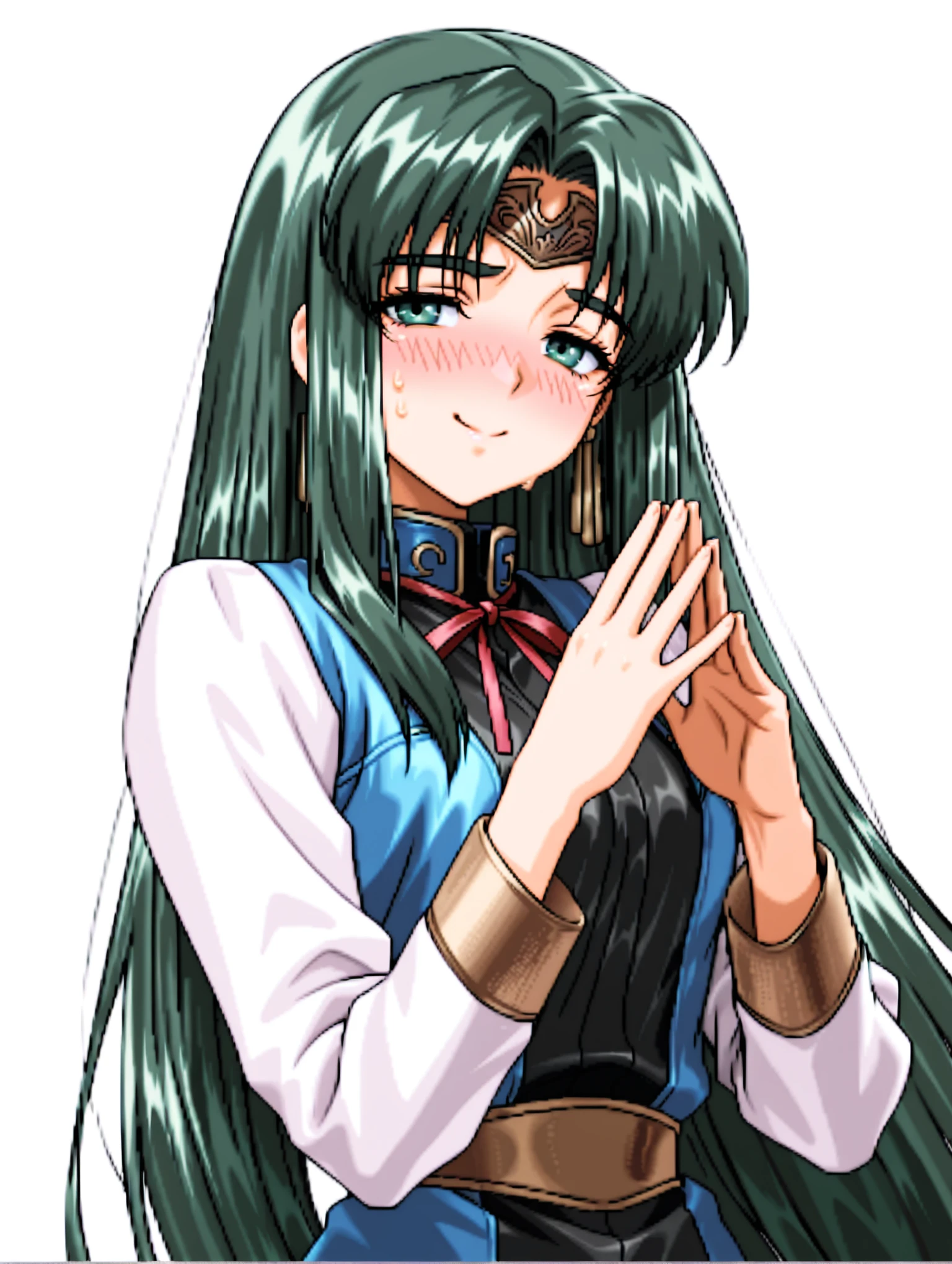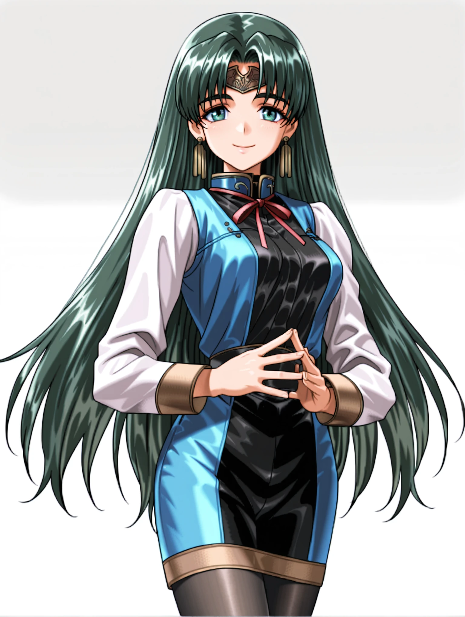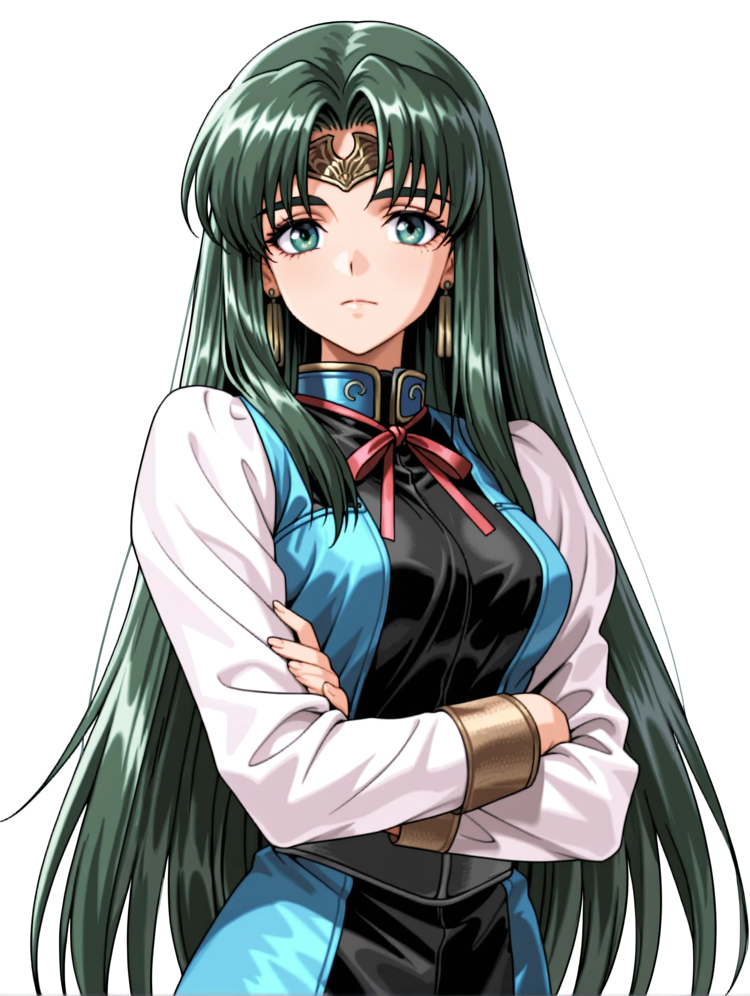 maris_a,green hair,green eyes,very long hair,circlet,jewelry,