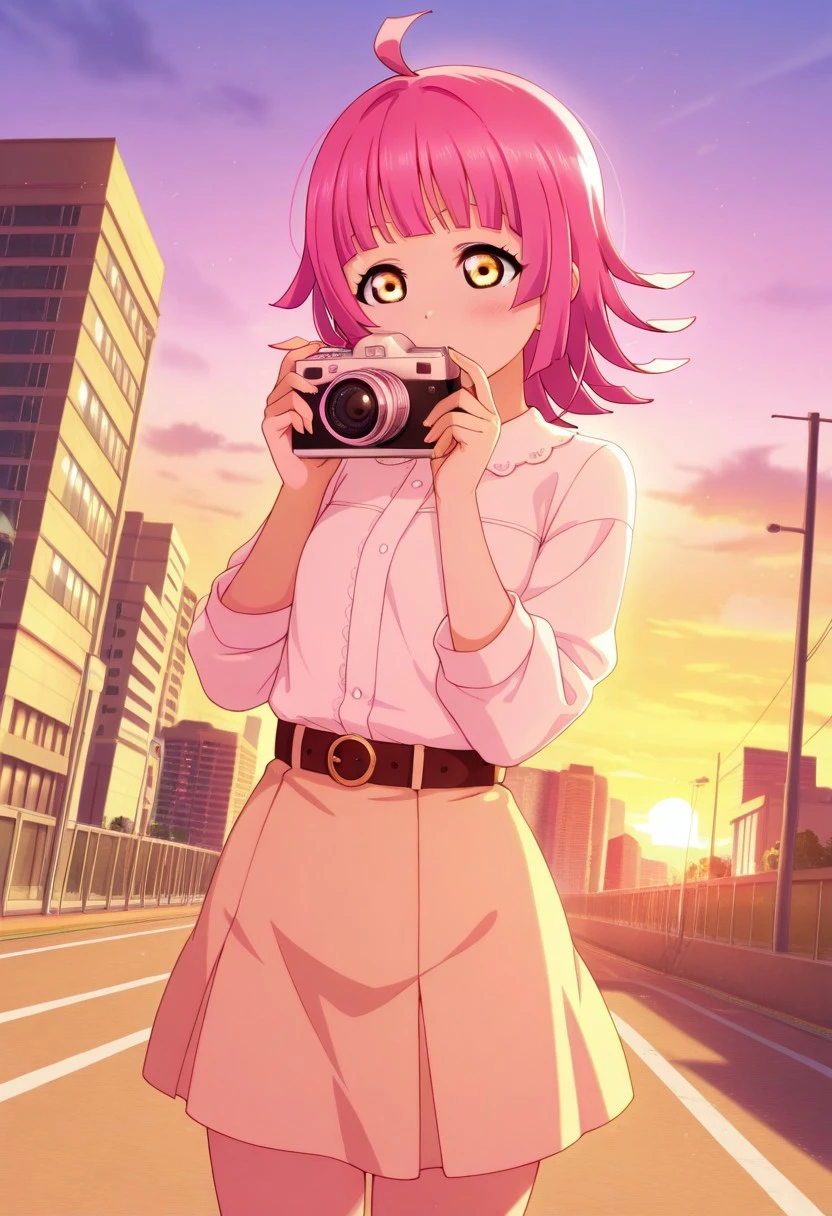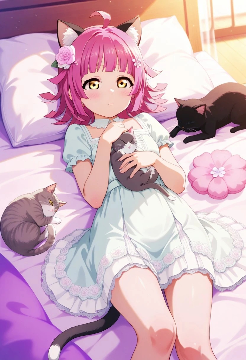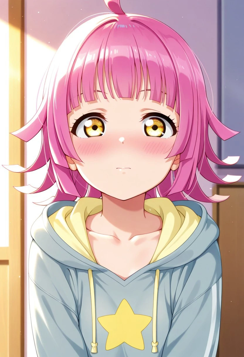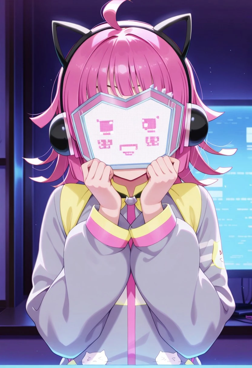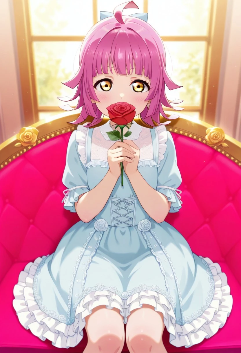 Trigger Words: tennoji rina, pink hair, yellow eyes, short hair, ahoge